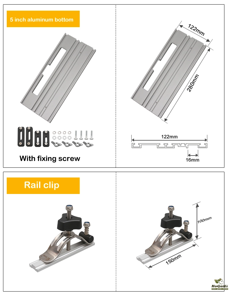 (How many inches=saw blade diameter in millimeters ÷ 25.4 millimeters) 5-inch aluminum base can be used to install 4-inch, 5-inch, 5.5-inch saws, as well as several 6-inch saws