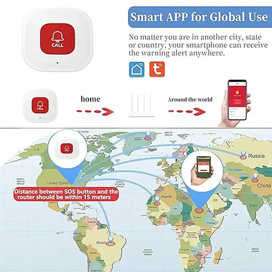 TUYA WiFi Emergency Call Button Smart SOS Caregiver Pager Phone Alert Transmitter Emergency Call Button for Kids Elderly Patient