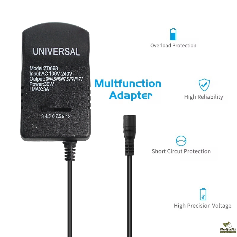 Power Output: 3.0/4.5/6.0/7.5/9.0/12V DC