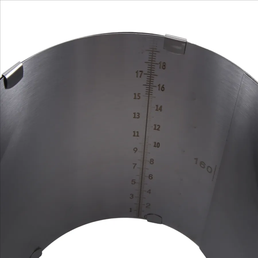 Suitable for both small and large cake creations - the cake ring can be adjusted circularly with a scale that allows individual adjustment of the size (16-30 cm), the clip fixes the desired size and ensures stability