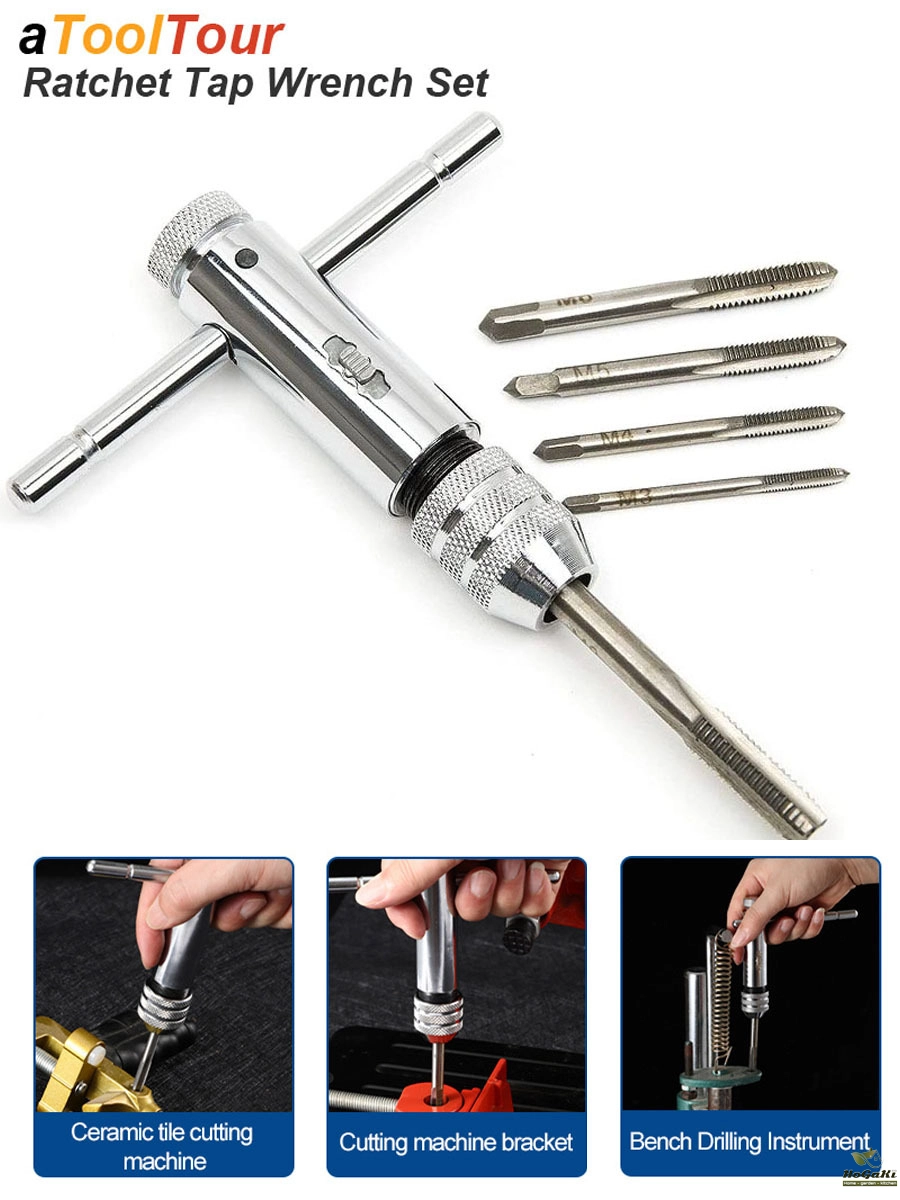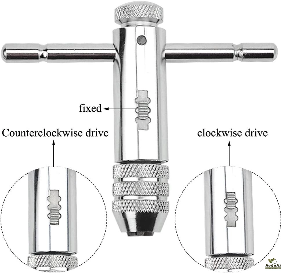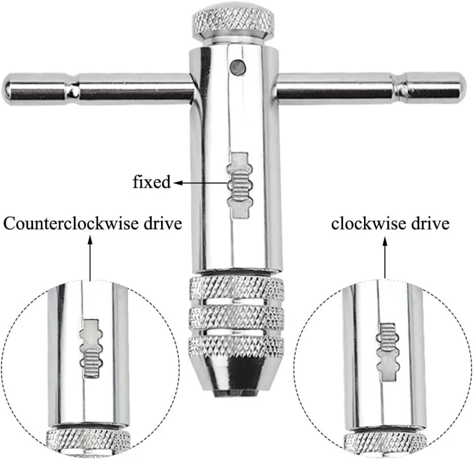 T-Handle Ratcheting Tap Wrenches Three position gear box for quick, efficient ratcheting action Designed for use with taps and can also use on the left hand tap , reamers, screw extractors and other tools with a square shank