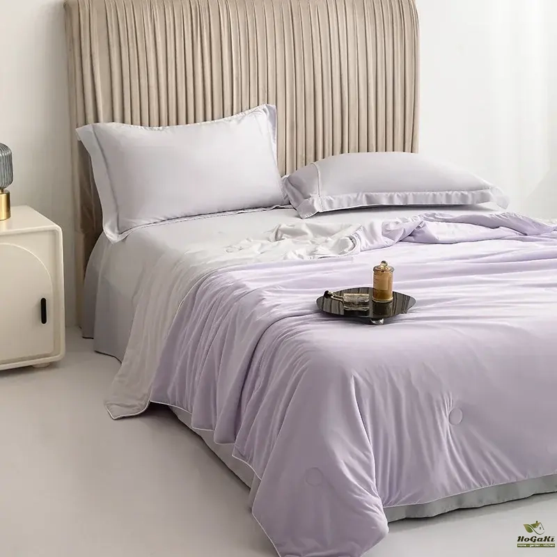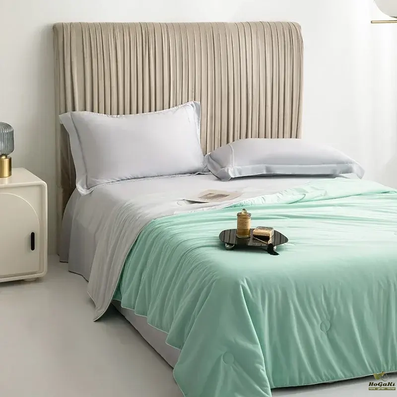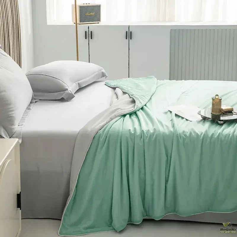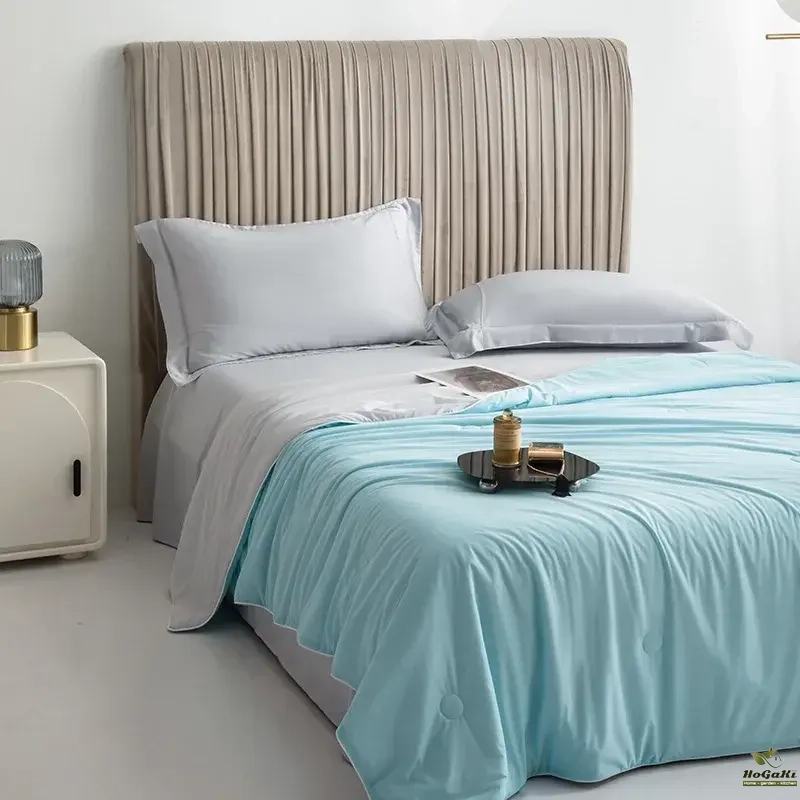 Geometric Triangle Pattern Summer Quilt-Lightweight Breathable Cotton Bedspread for Summer Yellow & Gray Design