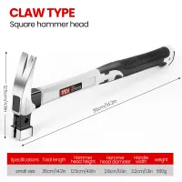 AIRAJ Short/Long Handle Claw Hammer Double Nail High Carbon Steel Household Durable Anti Slip Industrial Grade Hand Tool