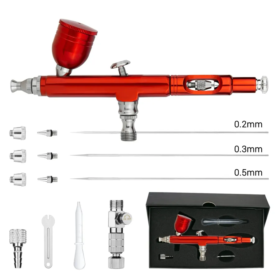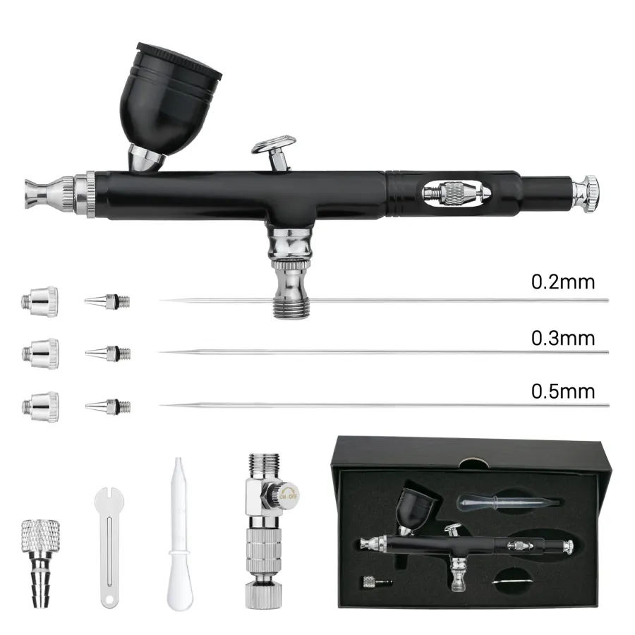 Enhanced Functionality: The open nozzle cap allows for a larger spraying angle. This set includes three needle types, namely 0.2mm, 0.3mm, and 0.5mm, providing versatile options for various applications. Moreover, this airbrush boasts exceptional atomization and detailing capabilities.