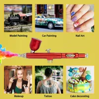 Versatile Applications: This airbrush kit is a versatile choice suitable for beginners, students, and advanced artists alike. It excels in a wide range of airbrushing tasks and works seamlessly with various paint spray media. From hobbies and crafts to auto graphics, models, temporary tattoos, cake decorating, fine art, makeup, nail art, and more, it's compatible with acrylic paint, body art ink, food colors, nail color, and airbrush foundation.Please dilute the solution to milk consistency