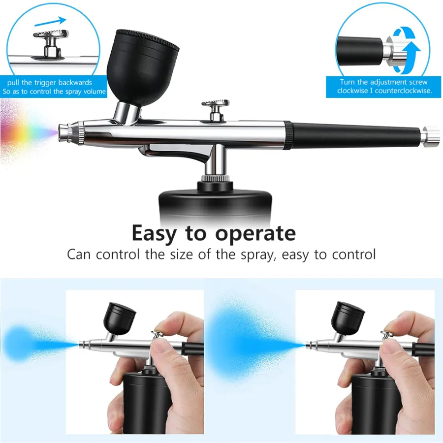Portable & Multifunction:upgrade airbrush kit has a portable and compact size, easy to carry anywhere. This mini airbrush can be used for art painting,cake decoration, makeup, nail art,handicraft,model coloring,illustrations,temporary tattoos,etc.