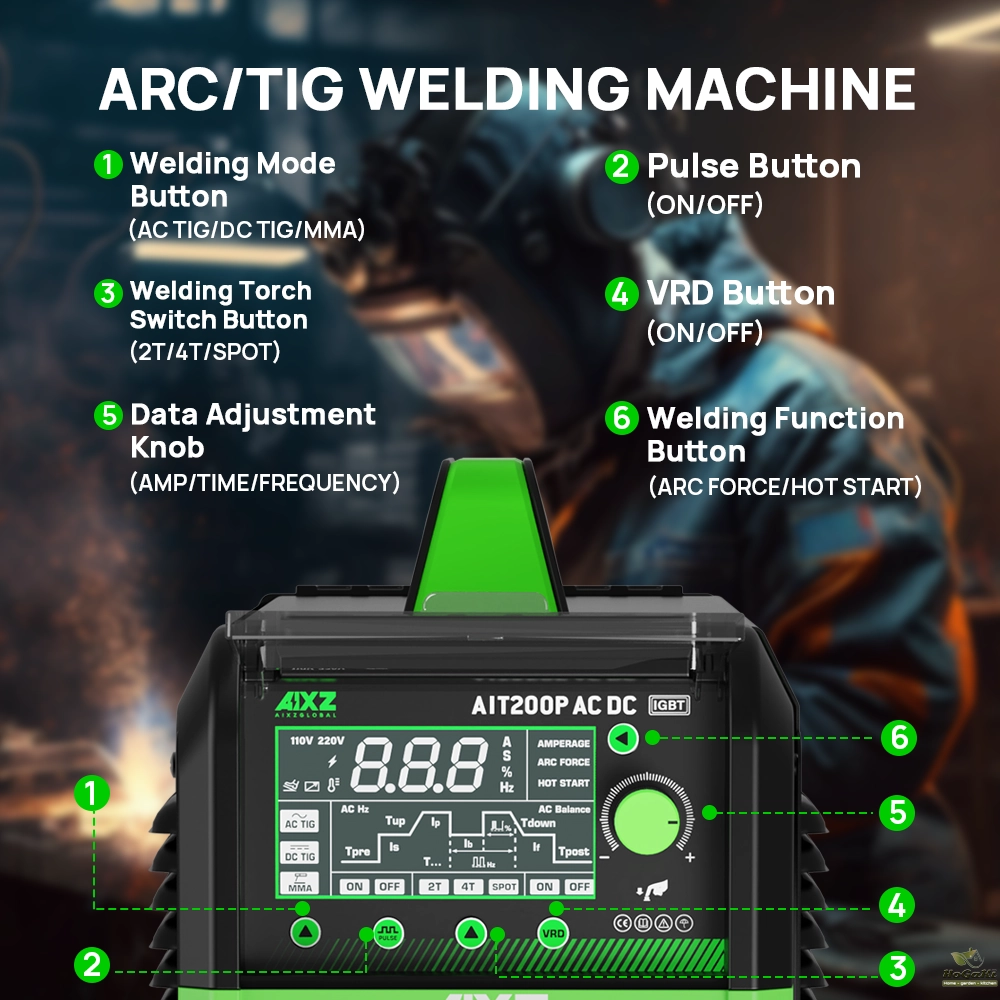 AIXZ AC/DC Aluminium Tig Welding Machine AIT200P HF TIG Spot TIG MMA ARC Stick Welder With Pulse