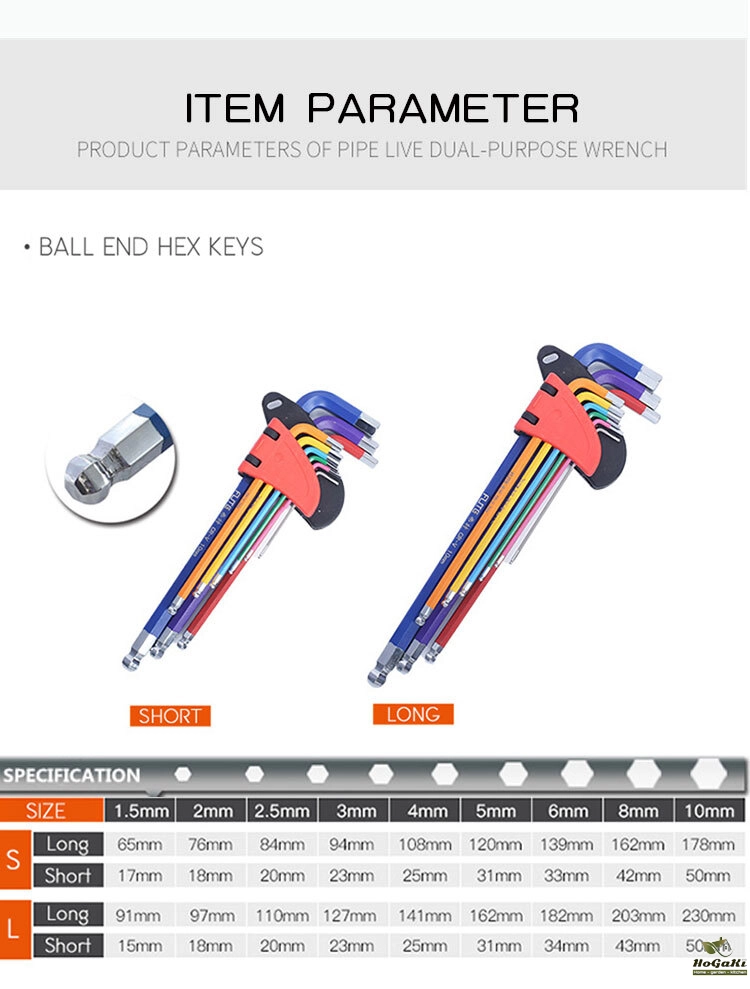 Hex Key Set Wrench For Allen Screw 9PCS Long Arm Allen Key Set 1.5mm 2mm 2.5mm 3mm 4mm 5mm 6mm 8mm 10mmHexagon Flat Ball Spanner