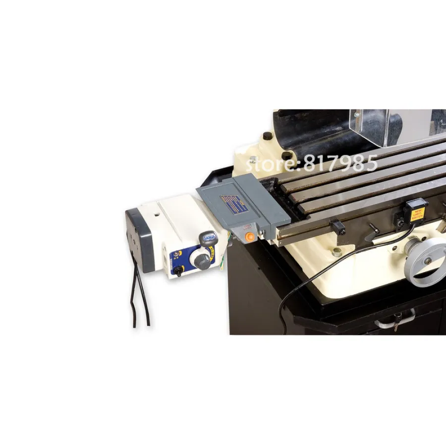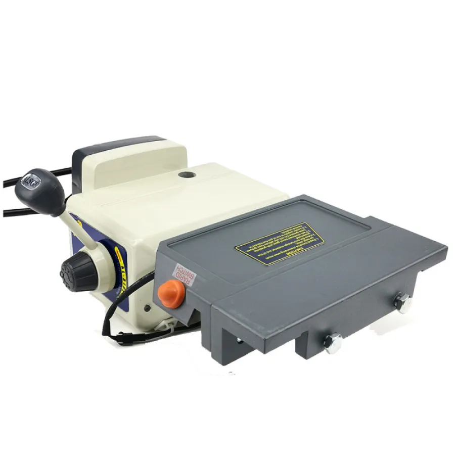 This set includes everything you should need to install this power feed on your machine, including the power feed unit, mounting bracket, drive gear, shims, safety stop with track, and hardware. It is a very useful power feed system for the X axis to provide a smooth, variable speed drive to the traverse of the table. This will enable control of the cut finish to a much greater extent than achievable by hand. With simple controls for left/right movement, auto stop in any position on the table provided by movable stops, overload protection and a fast traverse button giving 40" per min speed. Simple to fit and powered by a standard 230V three pin plug,Or 110V so no wiring is required. N.B. For ZX series mills only.
