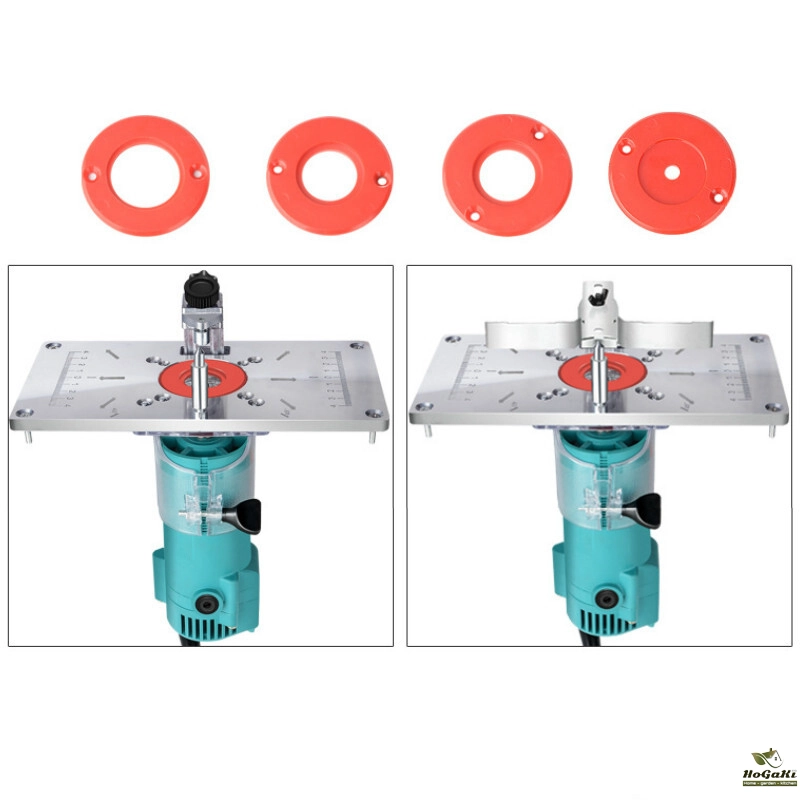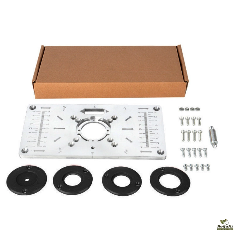 1. A set of woodworking bench tools includes 1 table planer insert plate, 4 pieces planer insert rings and some fixing screws.