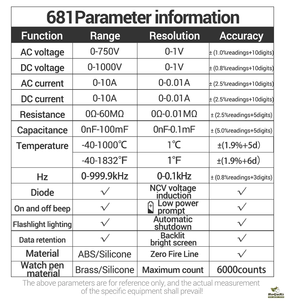 681 is a 6000 count pocket type true effective value automatic scanning digital meter.