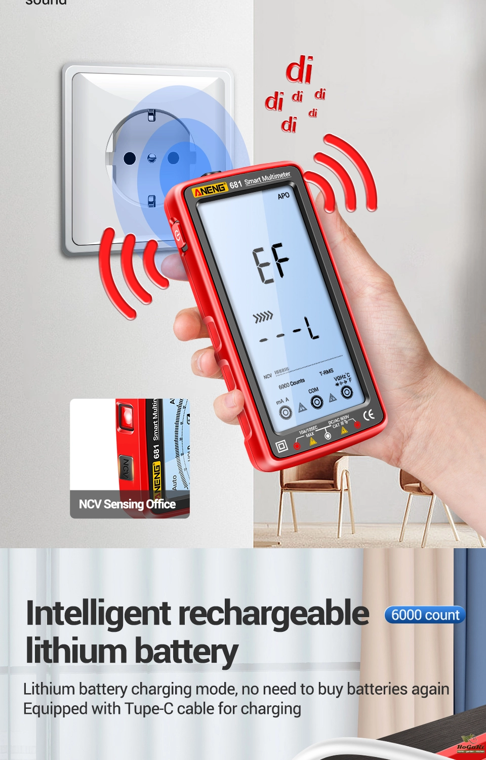 681 is a 6000 count pocket type true effective value automatic scanning digital meter.