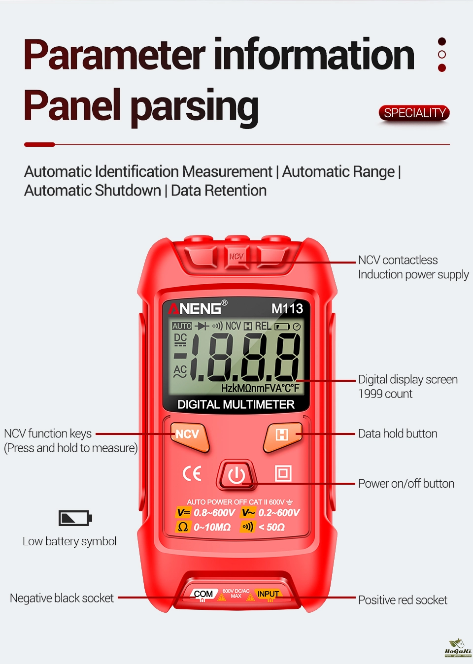 DC voltage | 0.8~600V | 0.001V~1V | ± (0.8%reading+5digits) |