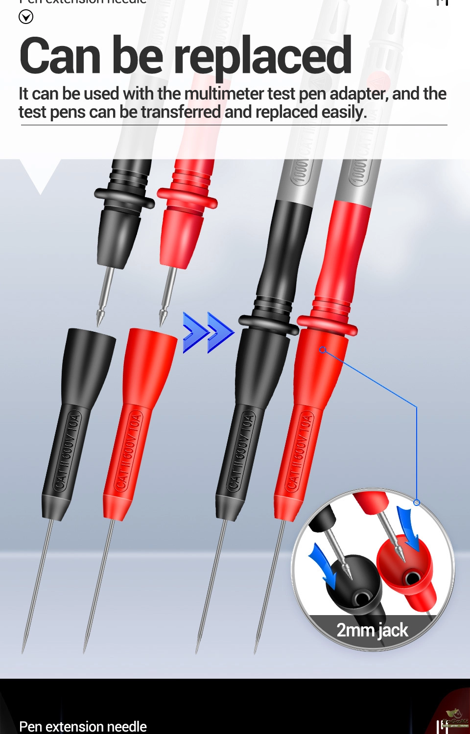 ANENG PT2003 Pen Extension Needle Tip 1 Pair Probe Tip Test Fine tip 1000V/10A Bendable Probe Detachable Accessories Tester Tool