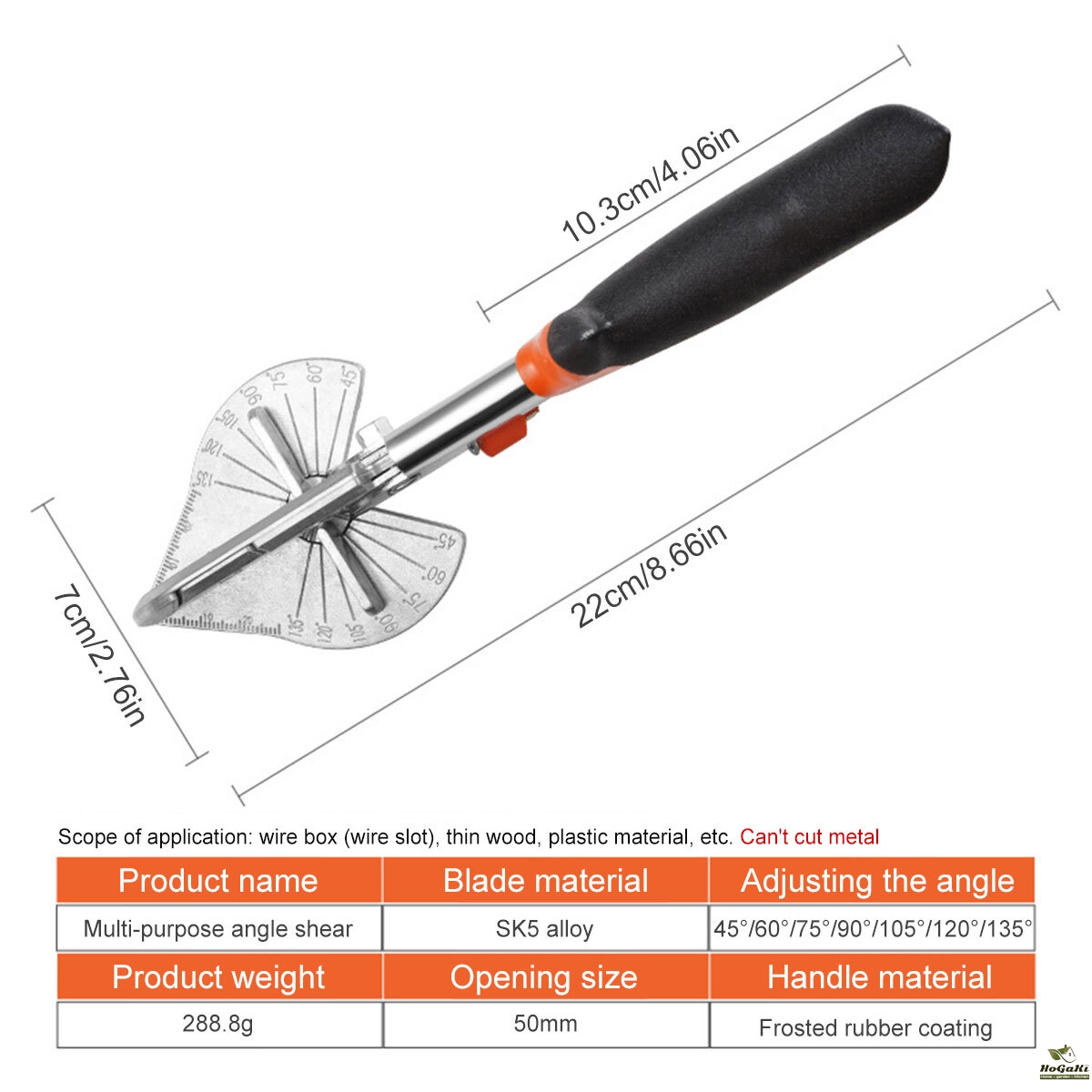 [45 To 135 Degree] The multi angle miter shears can be adjusted from 45 to 135 degree, which allows you to cut the trunking to different shape when needed. The miter shears will help you cut accurately and quite easy and fast.