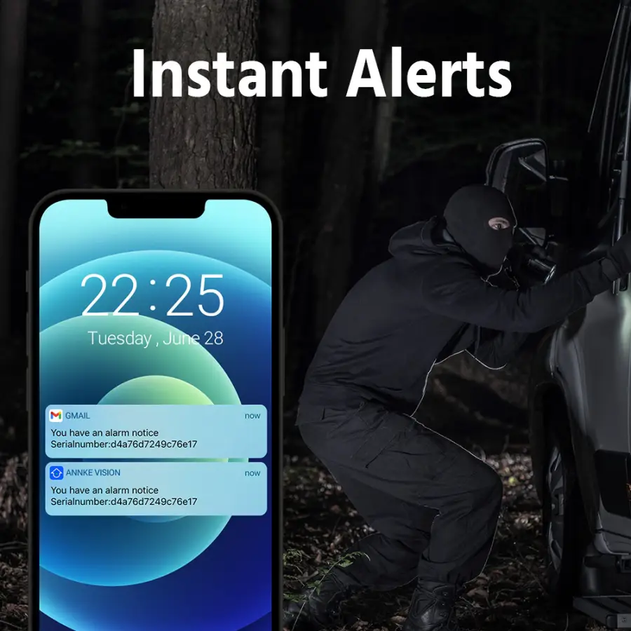 With the default IR night vision, human&vehicle triggered and turned the vision into color; even in darker environments, color night vision still at illuminations above 0.005Lux; in addition, IR night vision and color night vision mode switching.(100ft IR&color night vision distance )