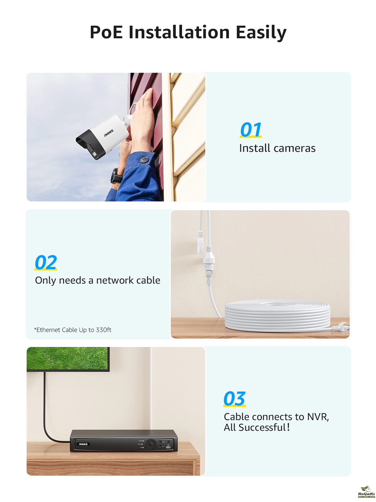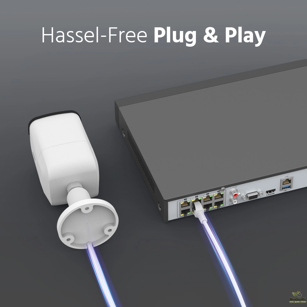 *Connect the PoE surveillance video camera to the NVR with just a single network cable without messy wiring.