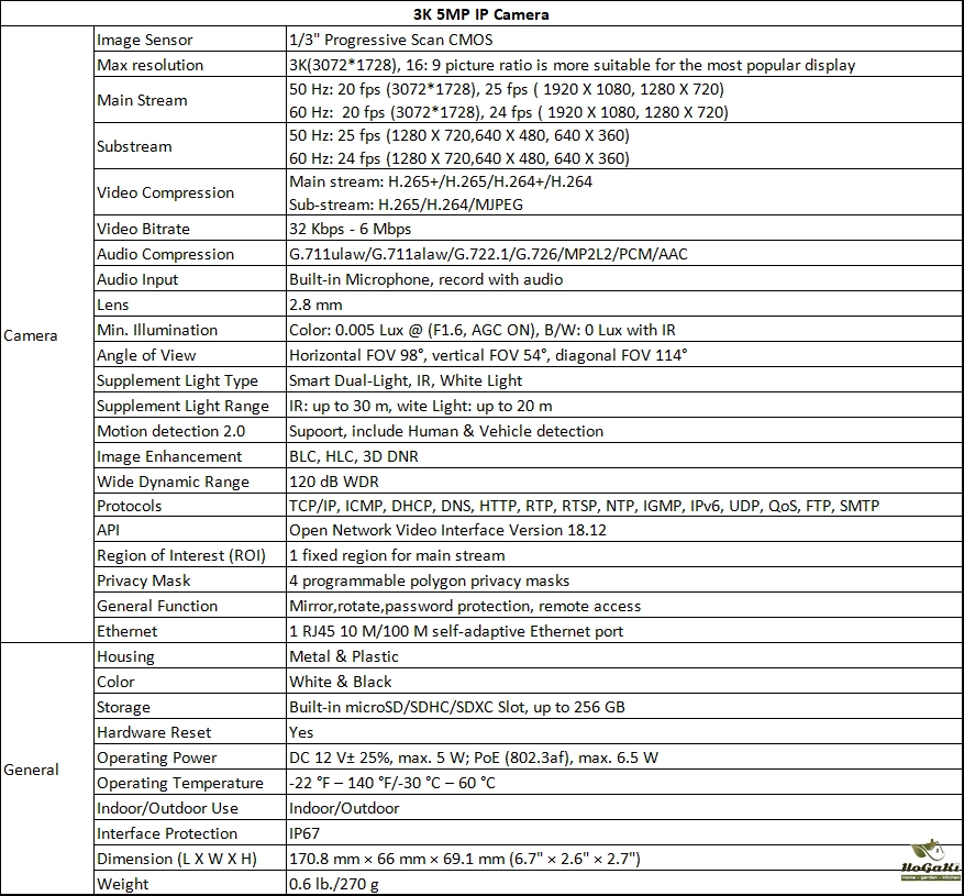 3K 5MP Key features: