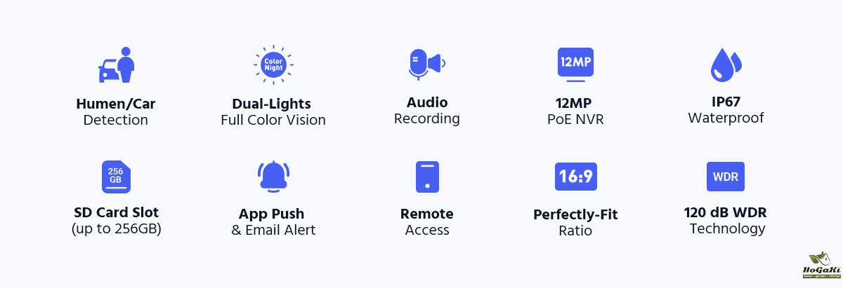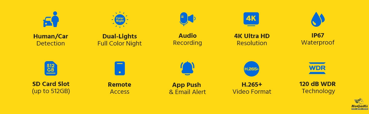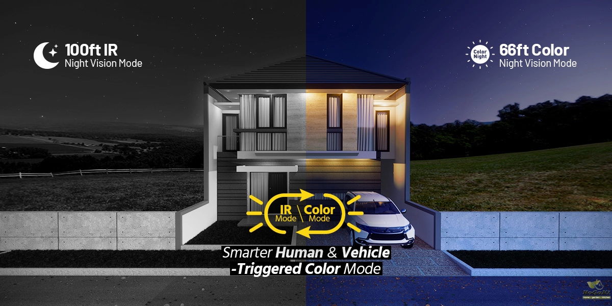 Smart Dual-Light: advanced technology with long range, IR light works normally at night, and it switches to white light when human or vehicle are detected.