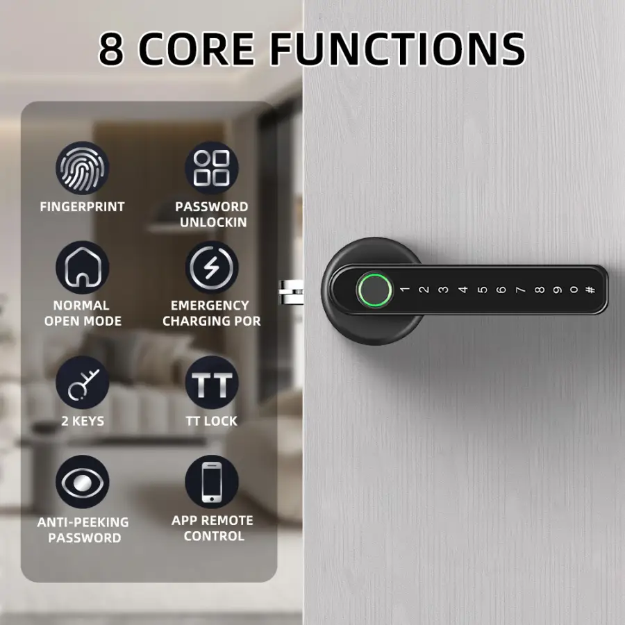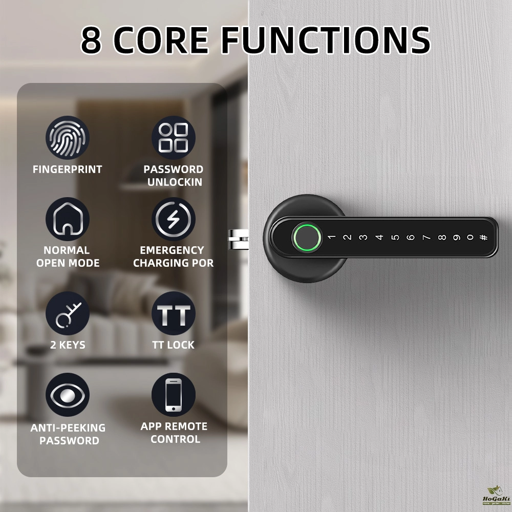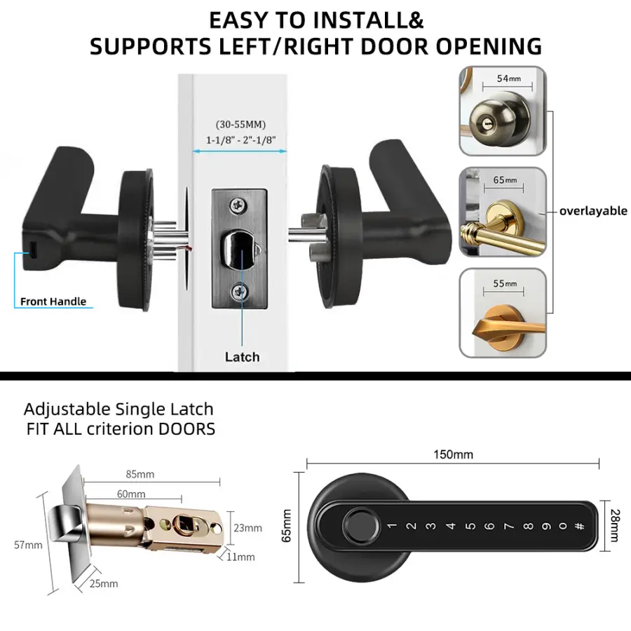 Aoresac Fingerprint Door Lock/Smart Door knob/Biometric Door Lock with passcode keypad keyless/APP Remote Control/Entry Door Handle for Bedroom Home Hotel Office Apartment Black