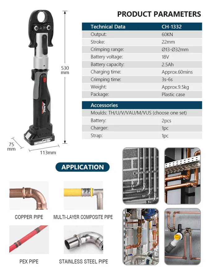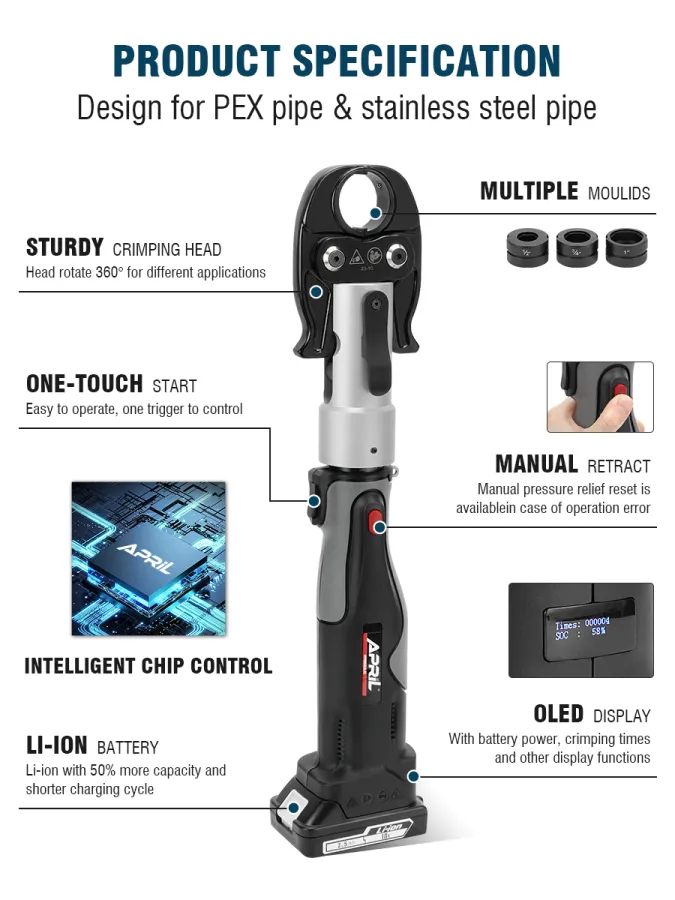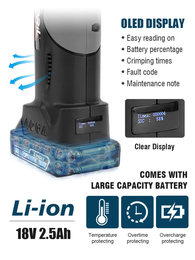 4-70mm² Home Hydraulic Pliers Pressure 10T Crimping Tools DIY Cable Terminal Wiring Pliers Cordless Crimping Pliers with Gloves