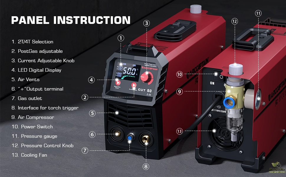 ARCCAPTAIN 50A Powerful Plasma Cutter with Dual 110V/220 V Voltage