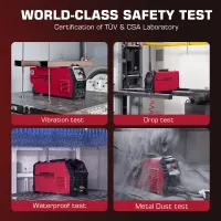 Certified as an audited lab by TÜV Rheinland and as a Testing Facility for Witnessed Manufacturers's Testing by CSAEach welding machine from the ARCCAPTAIN factory passed 300+ Authoritative Laboratory tests in simulating extremely harsh environments.