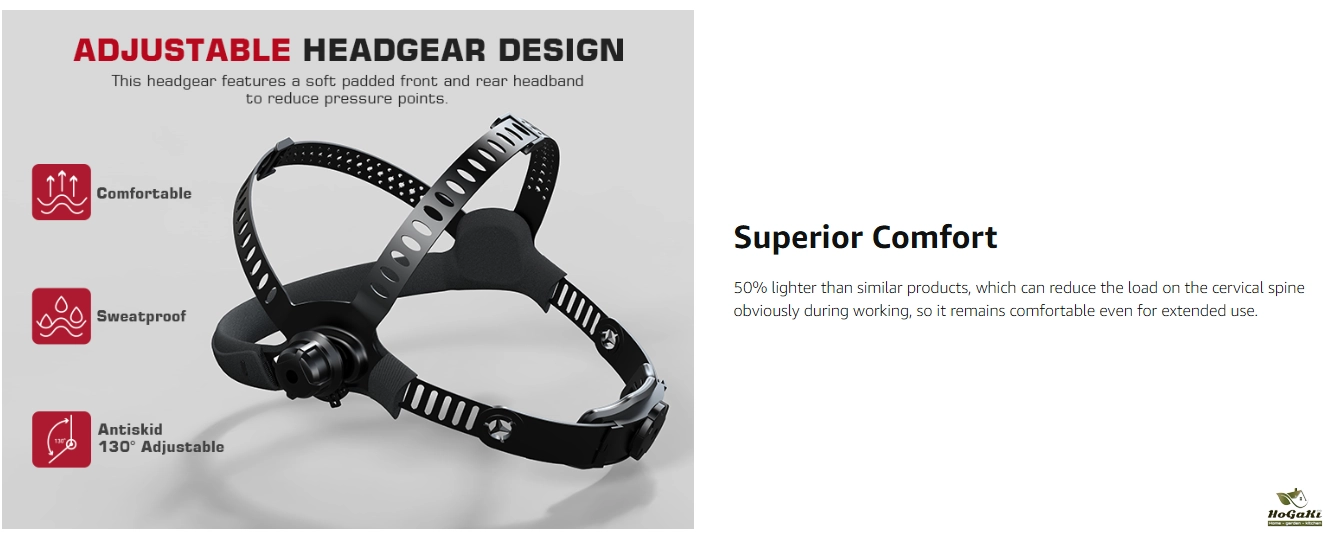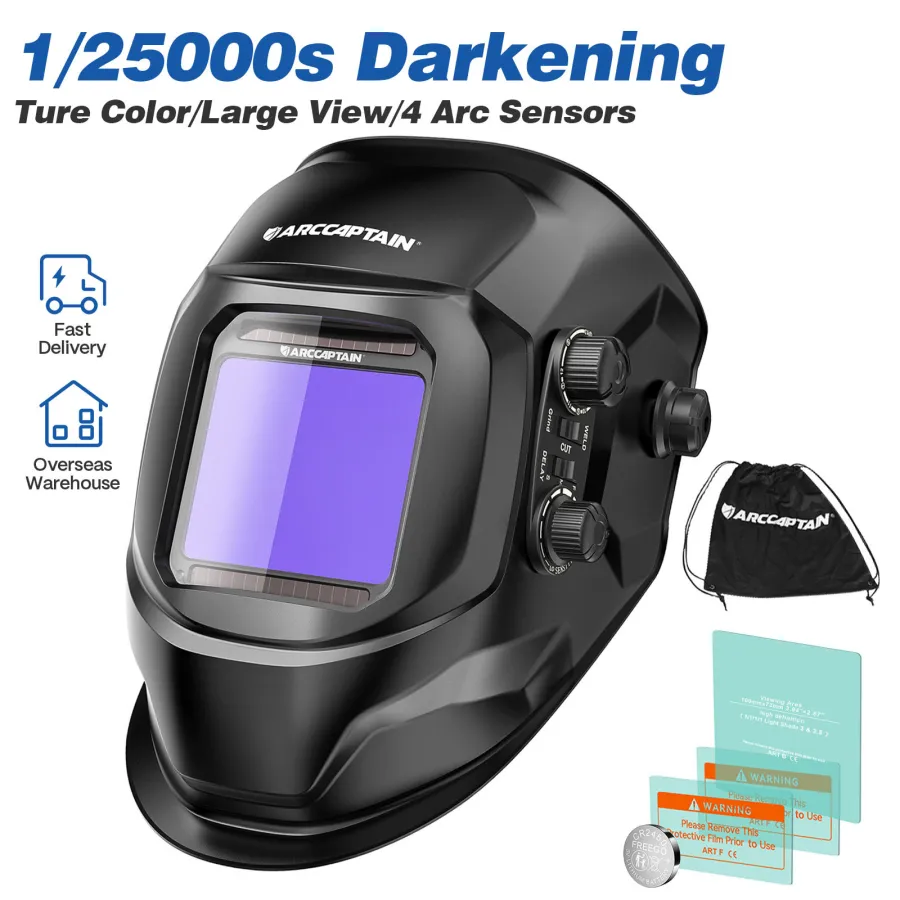 【SUPERIOR COMFORT】ARCCAPTAIN welding helmet is well made and comes in at only 2 pounds, which is 60% lighter than similar products, which can reduce the load on the cervical spine obviously during working, so it remains comfortable even for extended use. The dynamically adjustable headgear with breathable padding provides you with the perfect fit, comfort and adaptability that you might need.