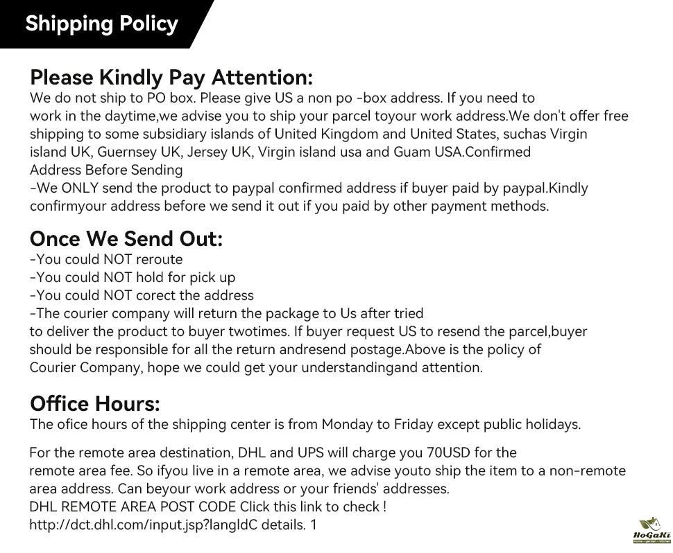 We are not responsible for any custom fees once the items have shipped. By purchasing our products, you consent that one or more packages may be shipped to you and may get custom fees when they arrive to your country.