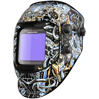 【AUTO DARKENING FILTER】This welding helmet comes with high-end auto-darkening lens and 4 premium arc sensors which let you adapt to different working environments by adjusting the lens's shade and sensitivity while you are operating ARC/MIG/TIG Welding. DIN4 on light state, DIN5-9/9-13 on dark state.