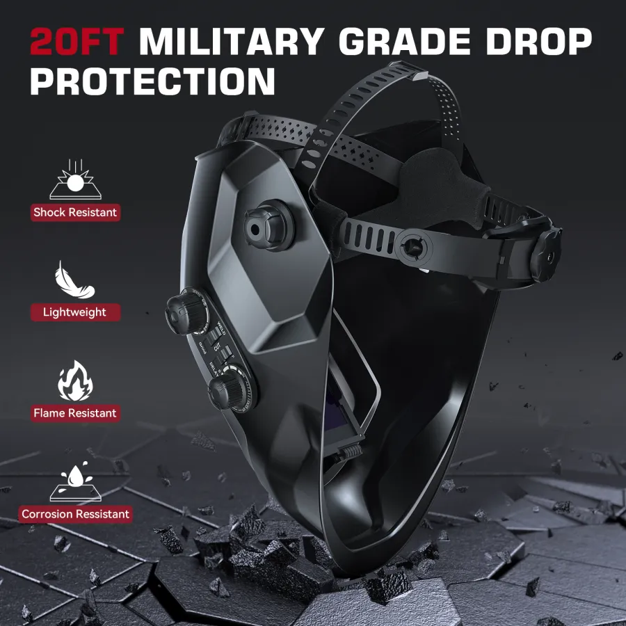 【OPTIMAL EYE PROTECTION】The welding helmets for men achieves safety andefficiency with its smart filters that protect your eyes from intense welding glare. Fully automatic up to DIN 16 at all times UV/IR protection, it reduces the risk of exposure to harmful light generated by the welding process and allows greater adaptability to various environments.