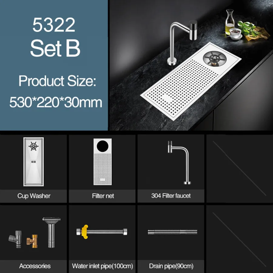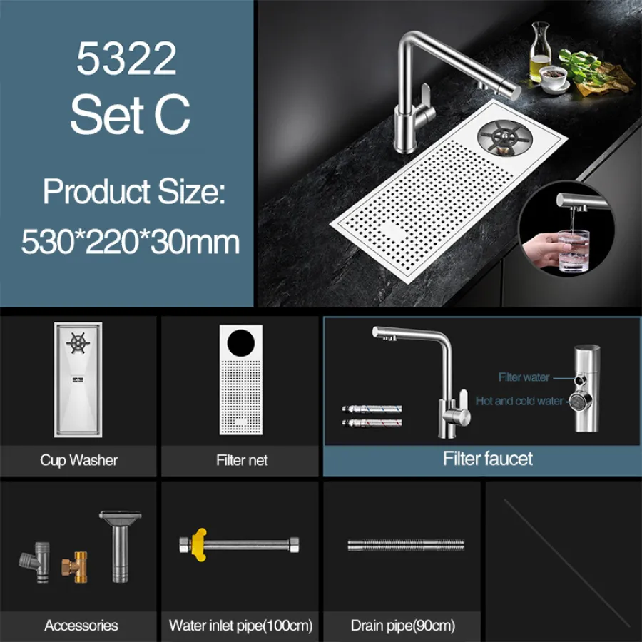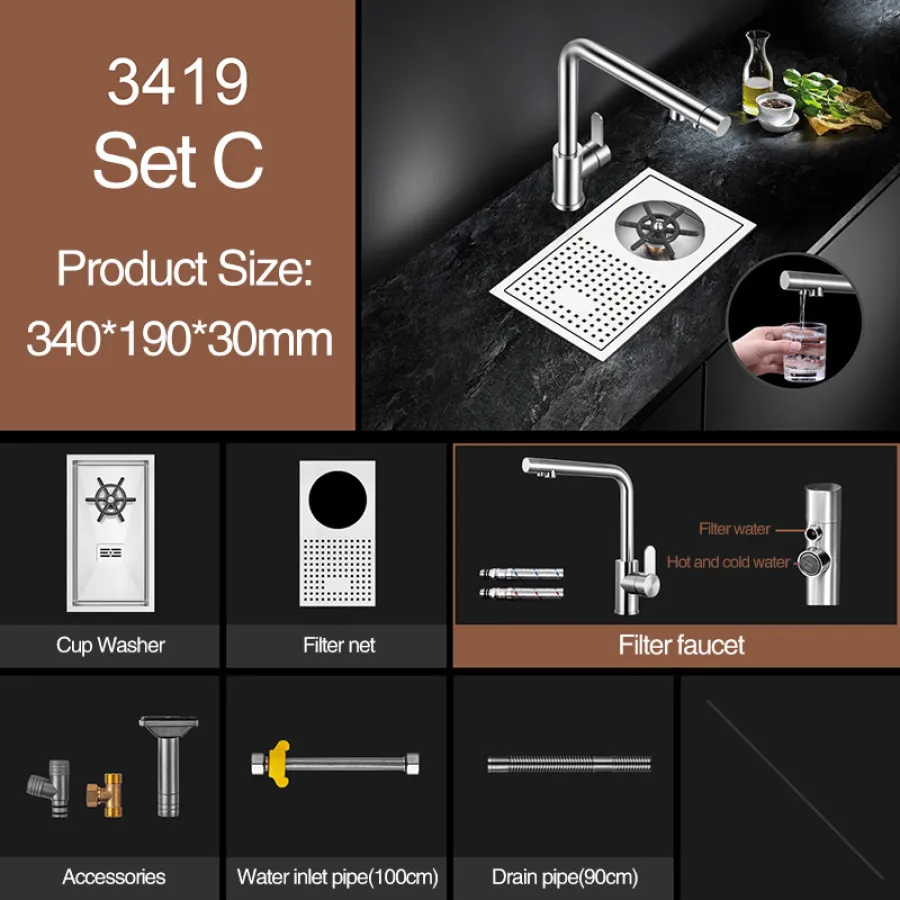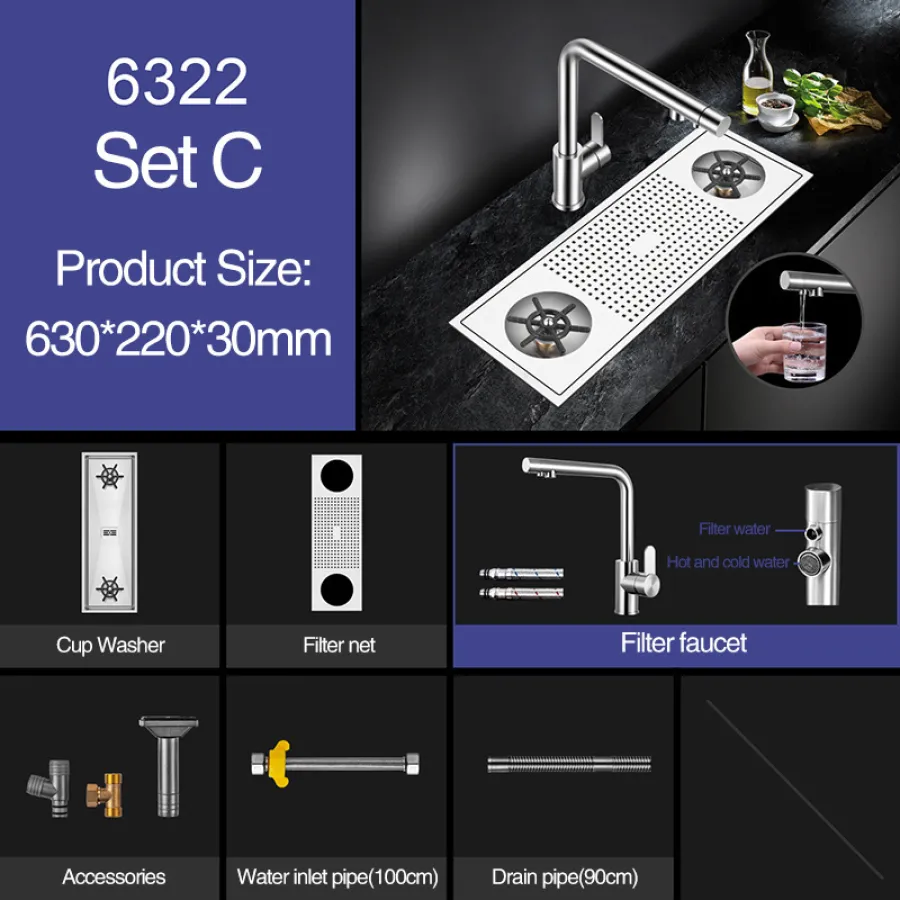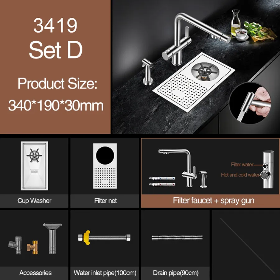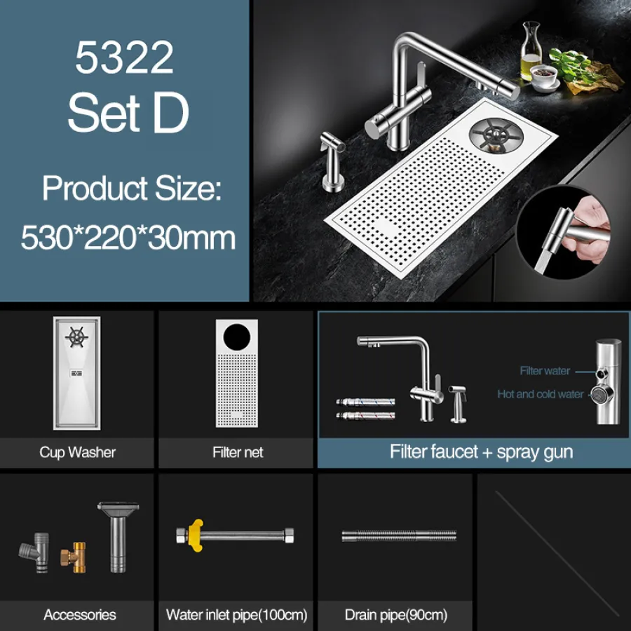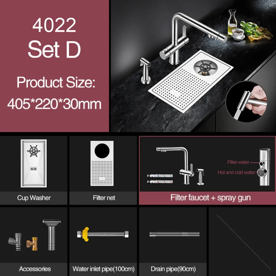 Waterfall Kitchen Sink 304 Stainless Steel Large Single Slot Integrated Faucet Set Soap Dispenser Cup washer With Fancet