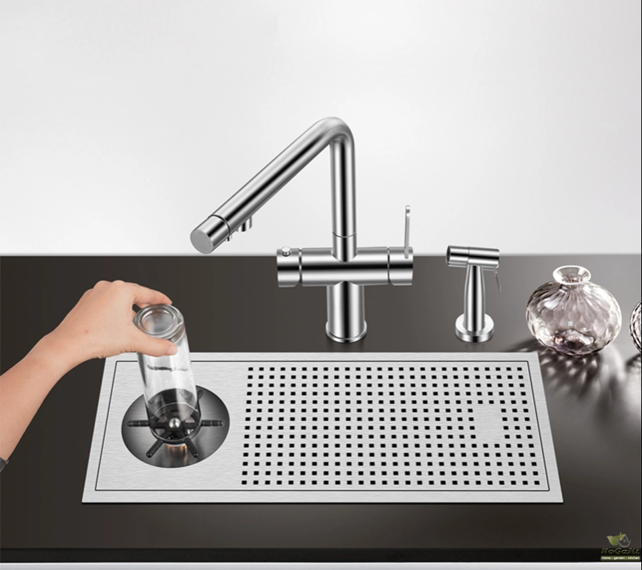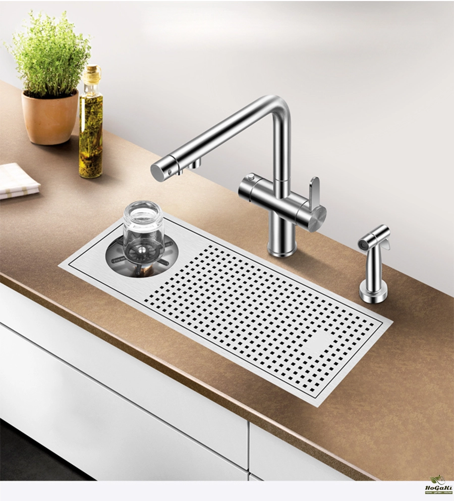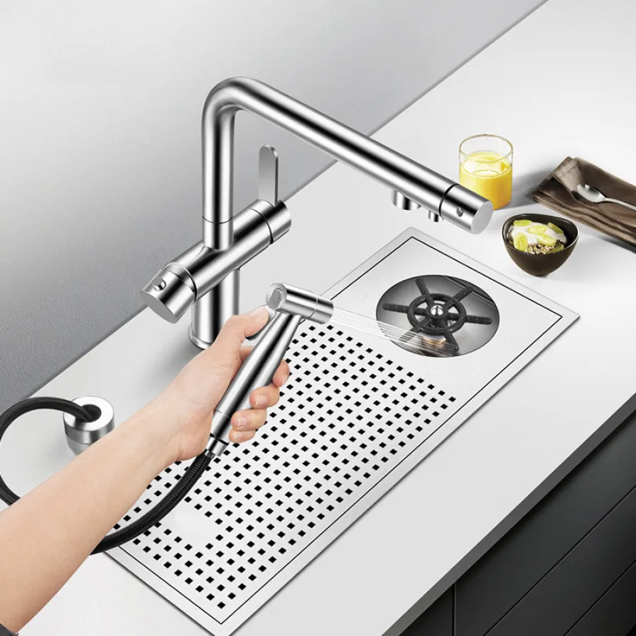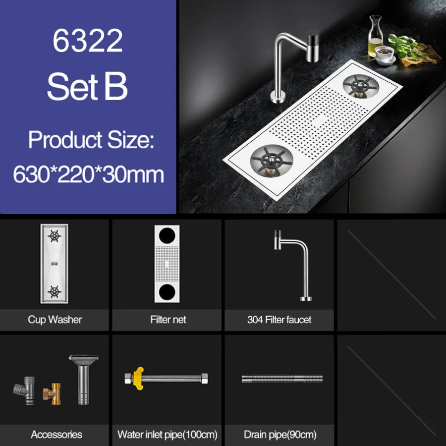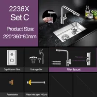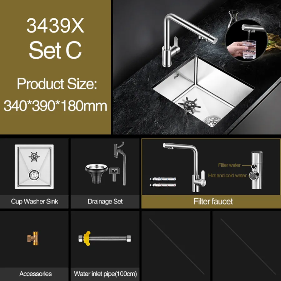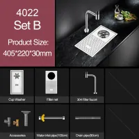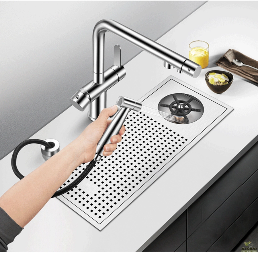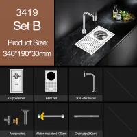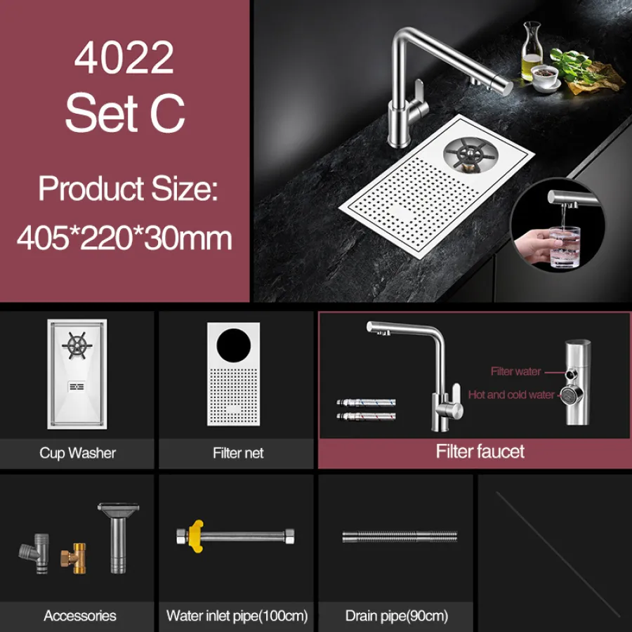 Waterfall Kitchen Sink 304 Stainless Steel Large Single Slot Integrated Faucet Set Soap Dispenser Cup washer With Fancet