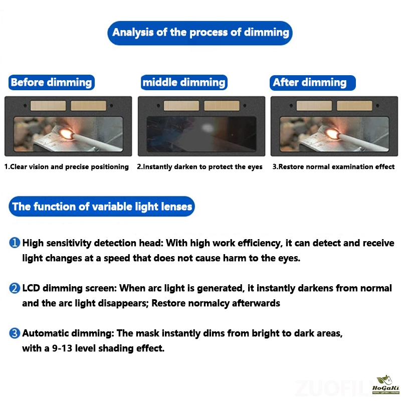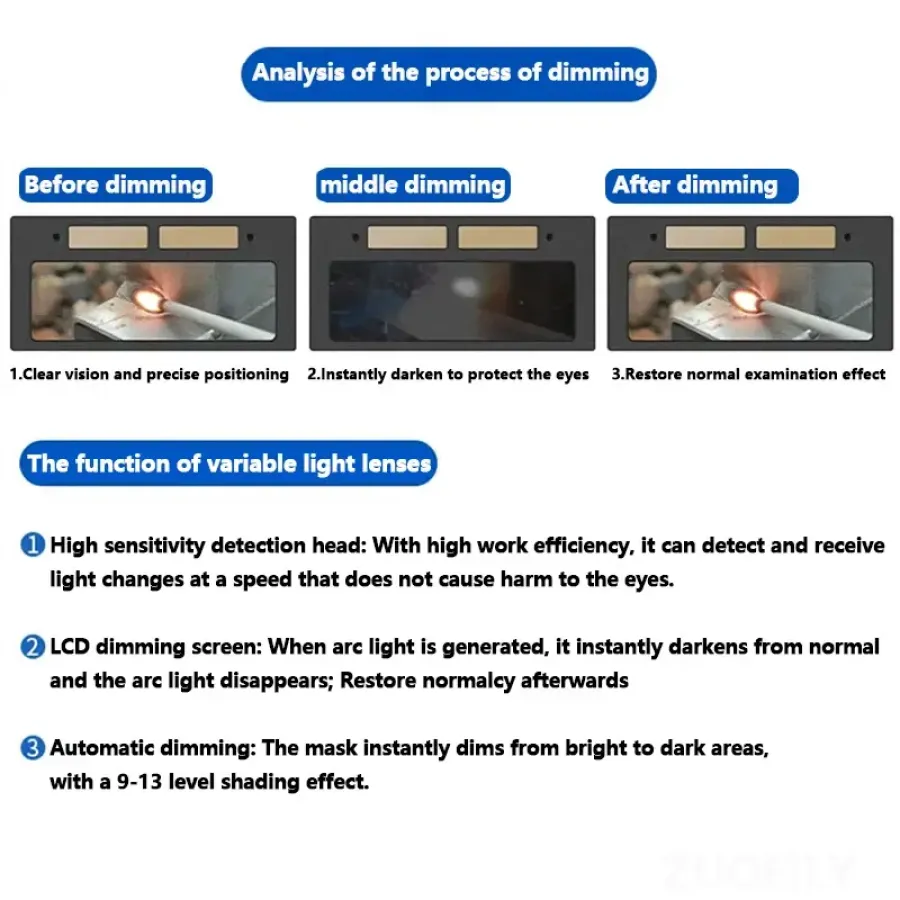 【Protective Gear】: Auto darkening welding glasses, 1/2/1/2 optical level, true color view, can protect the face and eyes from heat, spark, metal slag, dazzling light, etc
