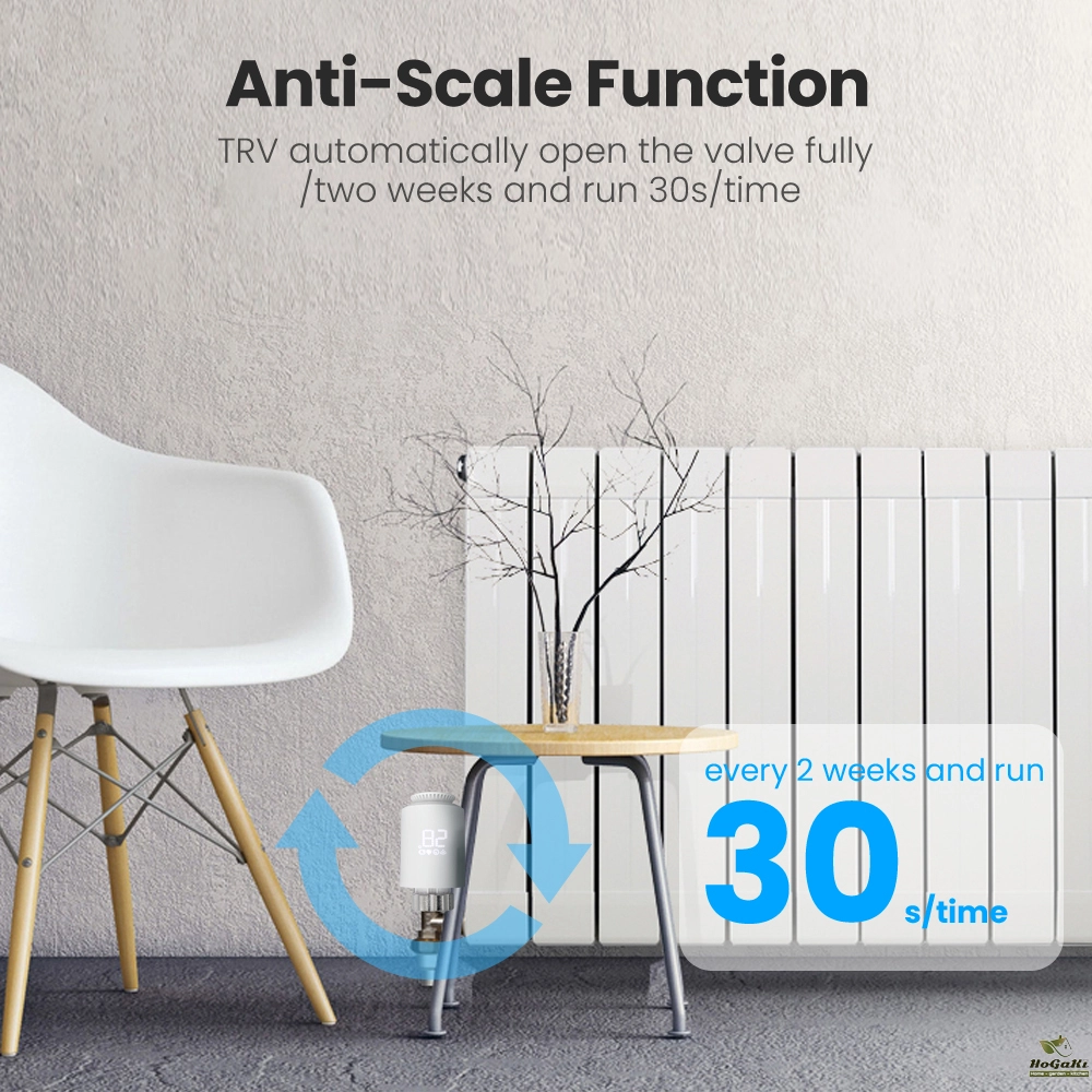 【Anti-Scale Function】-TRV automatically open the valve fully /two weeks and run 30s/time