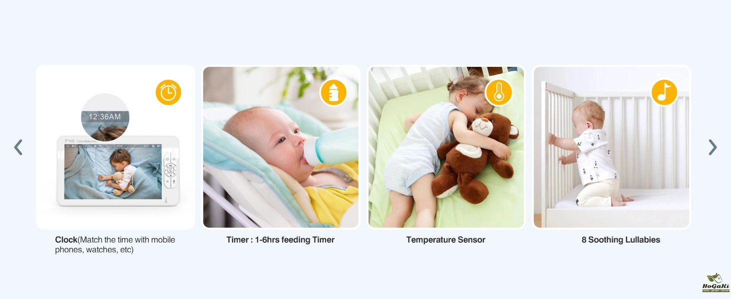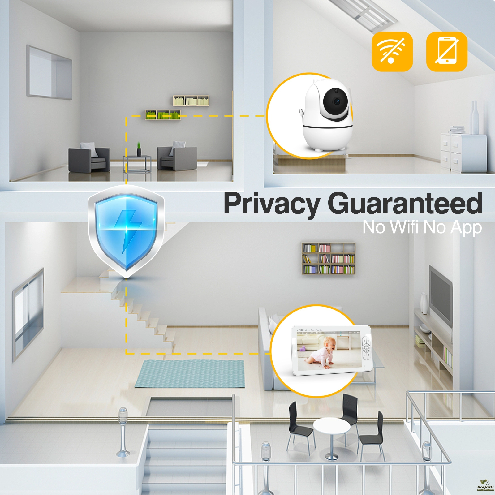 HD 1080p big screen with 4x zoom - The large 7'' HD 1080p resolution color screen coupled with a sharp picture with 10 times more details than ordinary 240p display baby monitors, allowing you to keep an eye on your baby more clearly. Need a closer look? This baby monitor 2x to 4x zoom capabilities let you see your baby up-close. (*Note:It is recommended to remove the scratch-resistant protective film of the screen before use.)