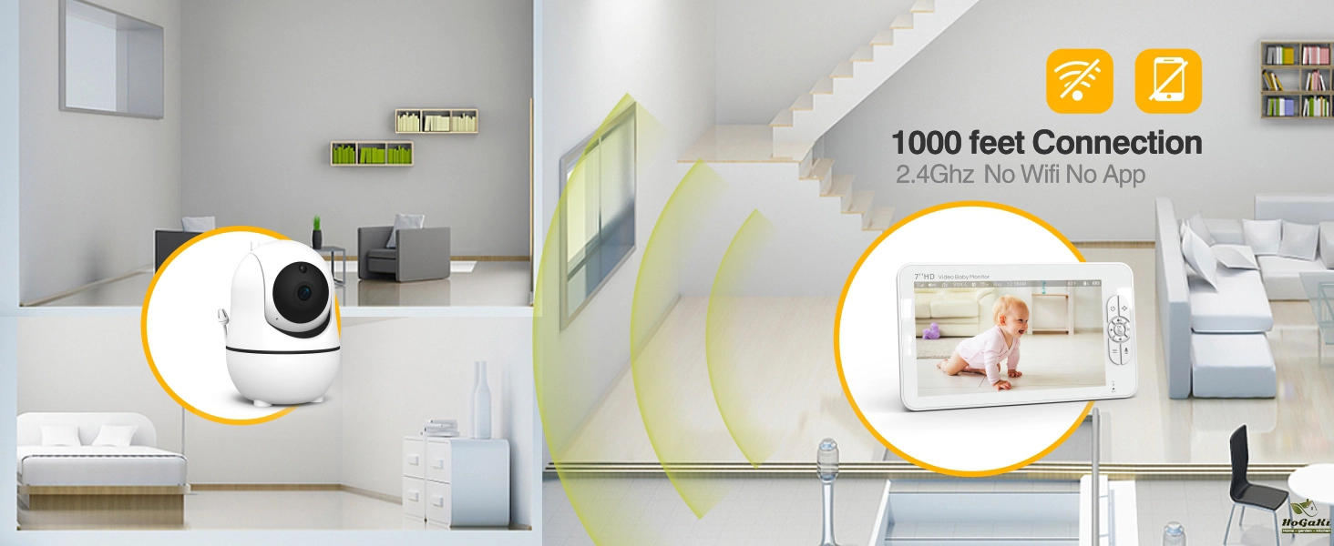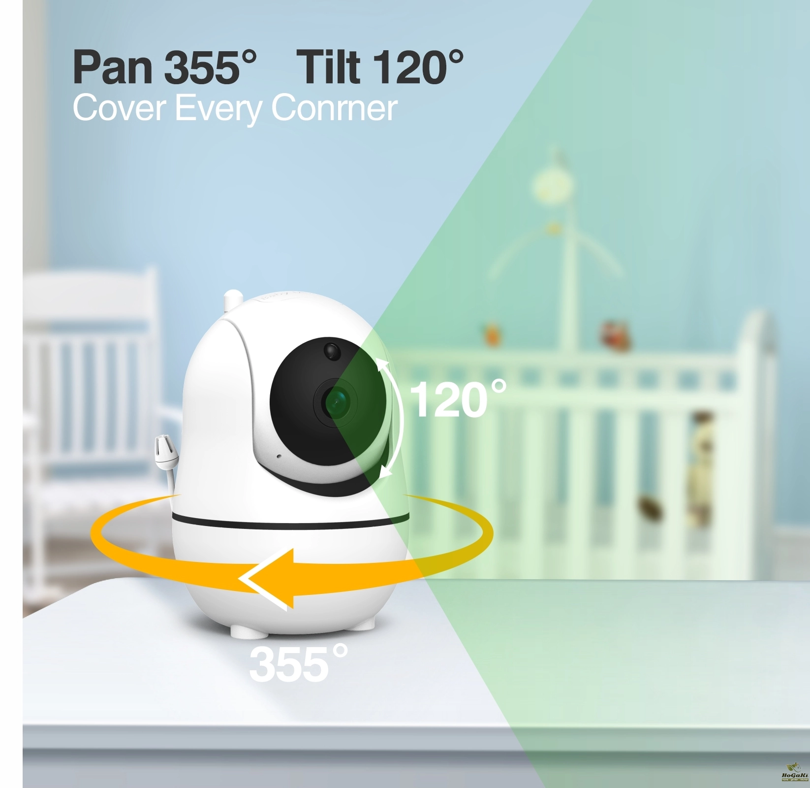 View the entire baby room with 1000ft range-coverage – The baby camera monitor lens pans 355° to capture all corners of a space, and tilts 120° to see floor to ceiling. If your baby escapes the crib, you'll be able to see it all happening. Move the baby camera around easily with the buttons on the LCD display. Get a clear and stable live-stream from anywhere in your home with wireless range coverage of up to 1,000ft.