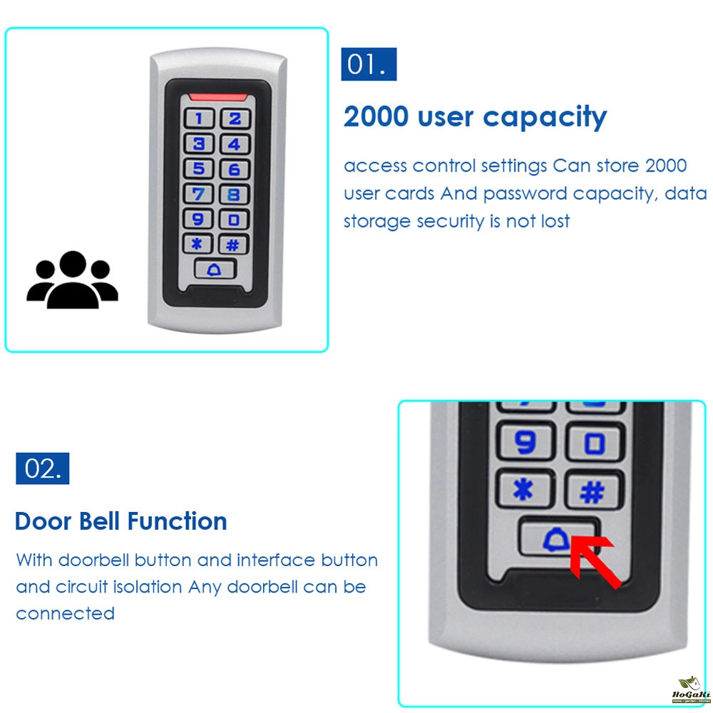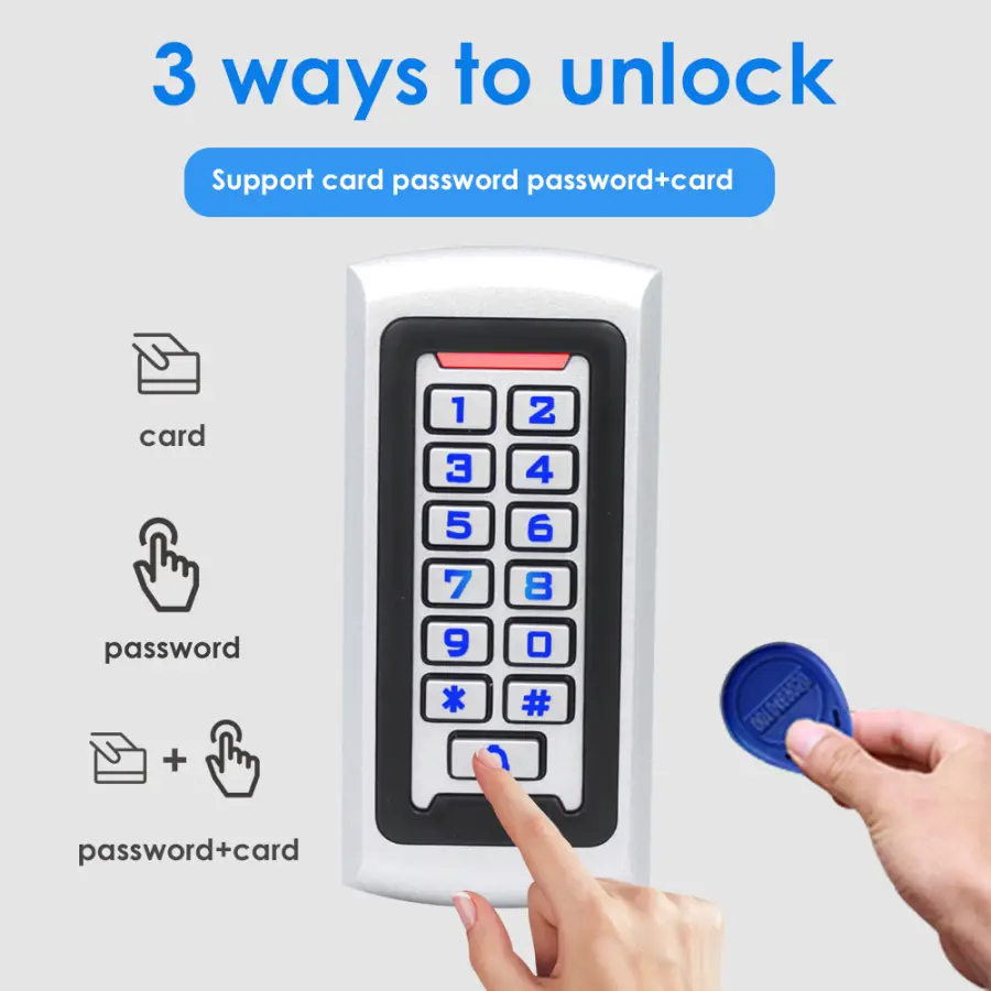 LED Backlight Metal Keypad Wiegand RFID Card Reader 125khz Access Control System Proximity Card Standalone 2000 Users Door Lock