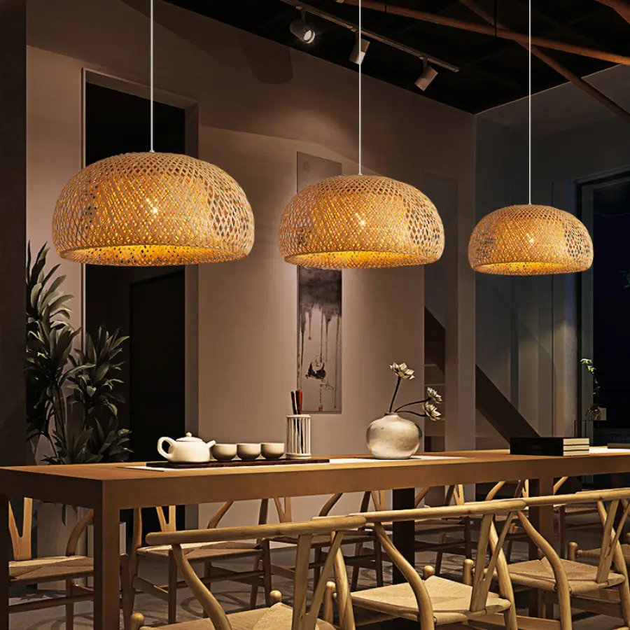Bamboo Hanging Lamp Pendant Ceiling Light Rattan Wicker Lustre Hand Knit Braiding Suspended Home Dining люстра потол