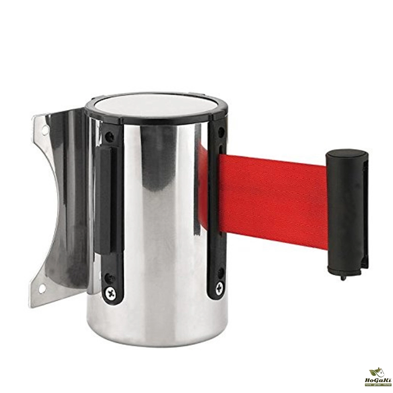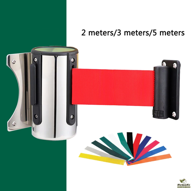 Crowd Control Outdoor Stainless Steel Wall Mount Red Belt Retractable Ribbon Barrier Sport Stanchion Queue 2m3m/5m