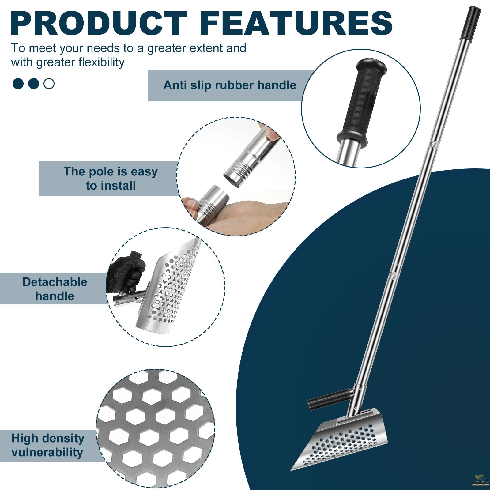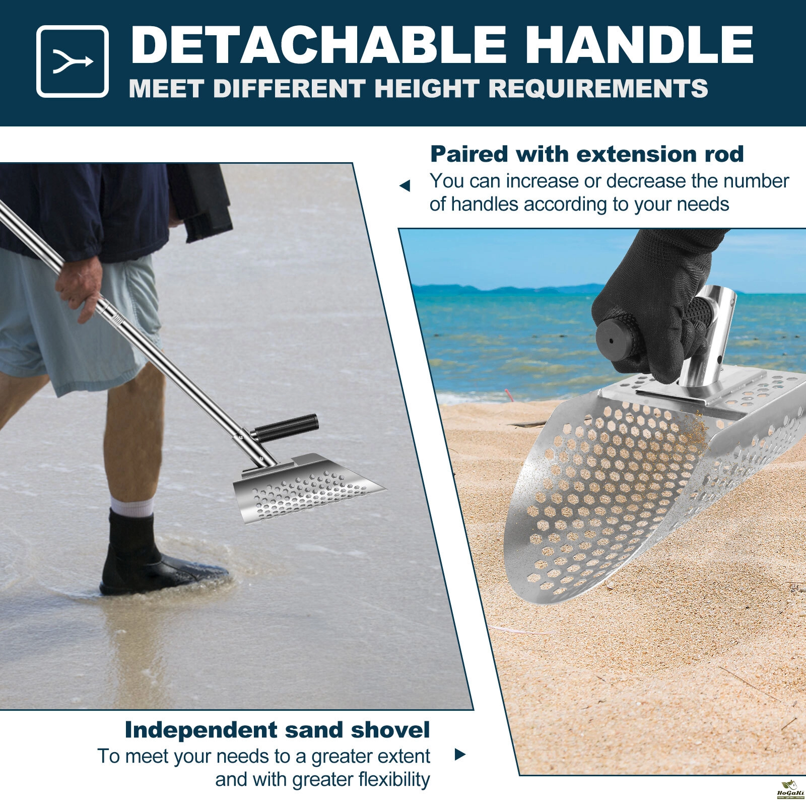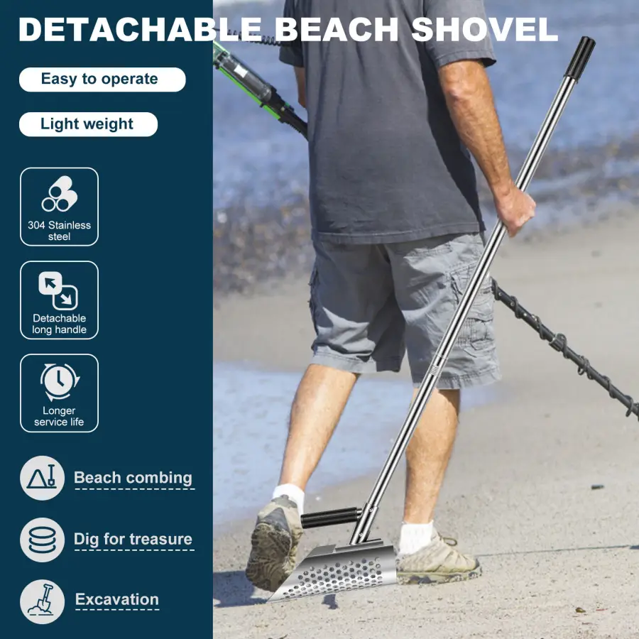 Flexible Usage: The sand shovel can be used as a standalone sand shovel or with the extension pole. It adopts a detachable long handle design to meet different height requirements, allowing you to maintain a standing position while working