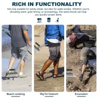 Quick Sift Items: This sand scoop is designed for beach and underwater searches as well as surfing. Whether you are shoveling sand, panning for gold or doing archaeology, this sand shovel can help you quickly sift items
