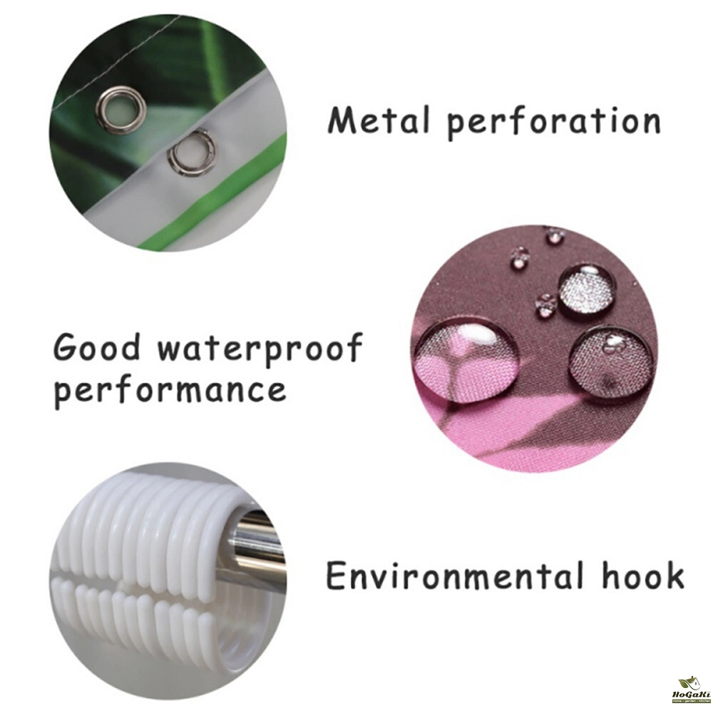 The shower curtains are made of premium polyester material, this shower curtain is mildew resistant and waterproof for durable use. It is equipped with eyelets in the upper edge and can be hung up easily and simply with hooks. With beautiful printing, it is also a nice decoration for your bathroom.