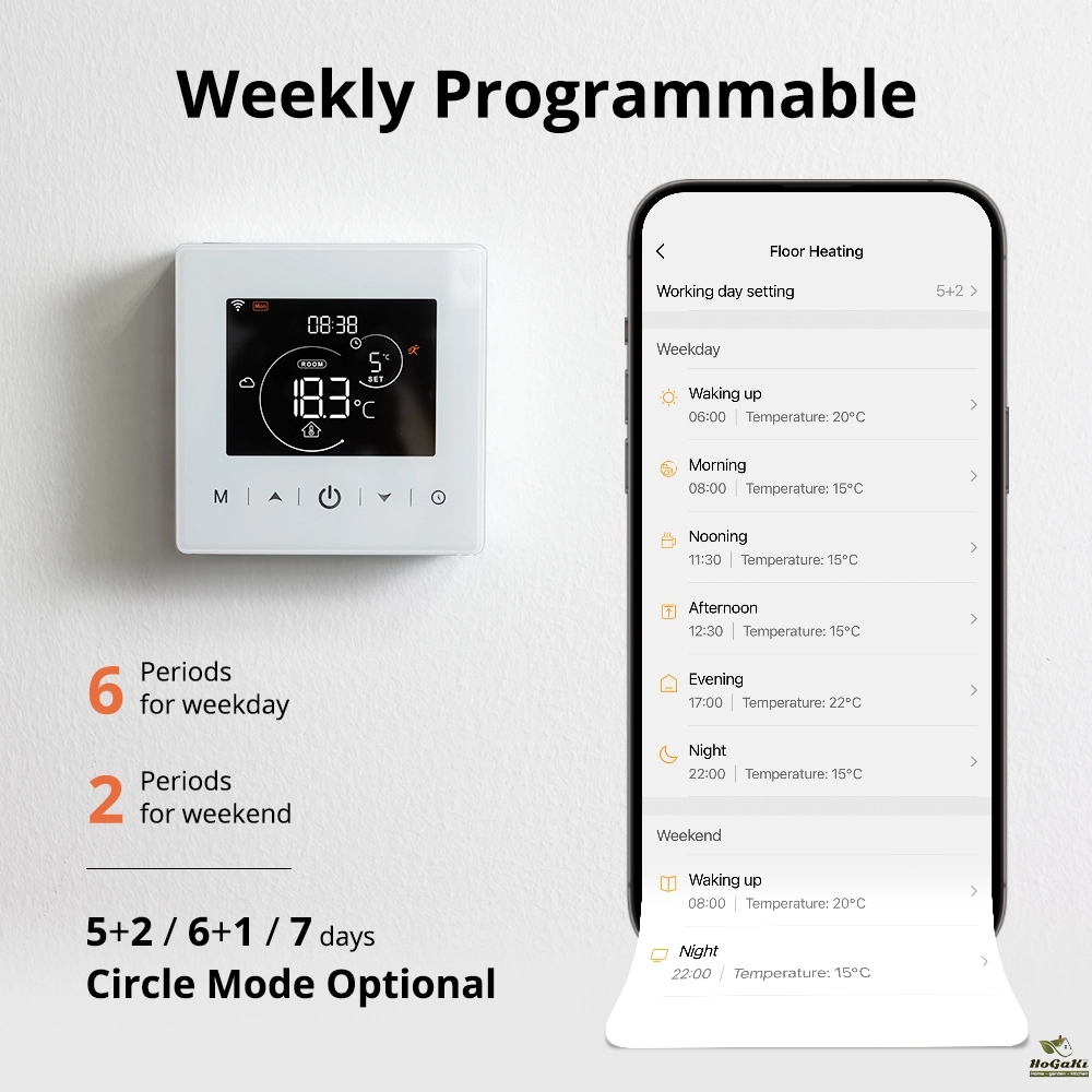 【 Programmable 】 Multiple programming modes can be used to set the temperature for multiple time periods, which can be manually set or set on the app.