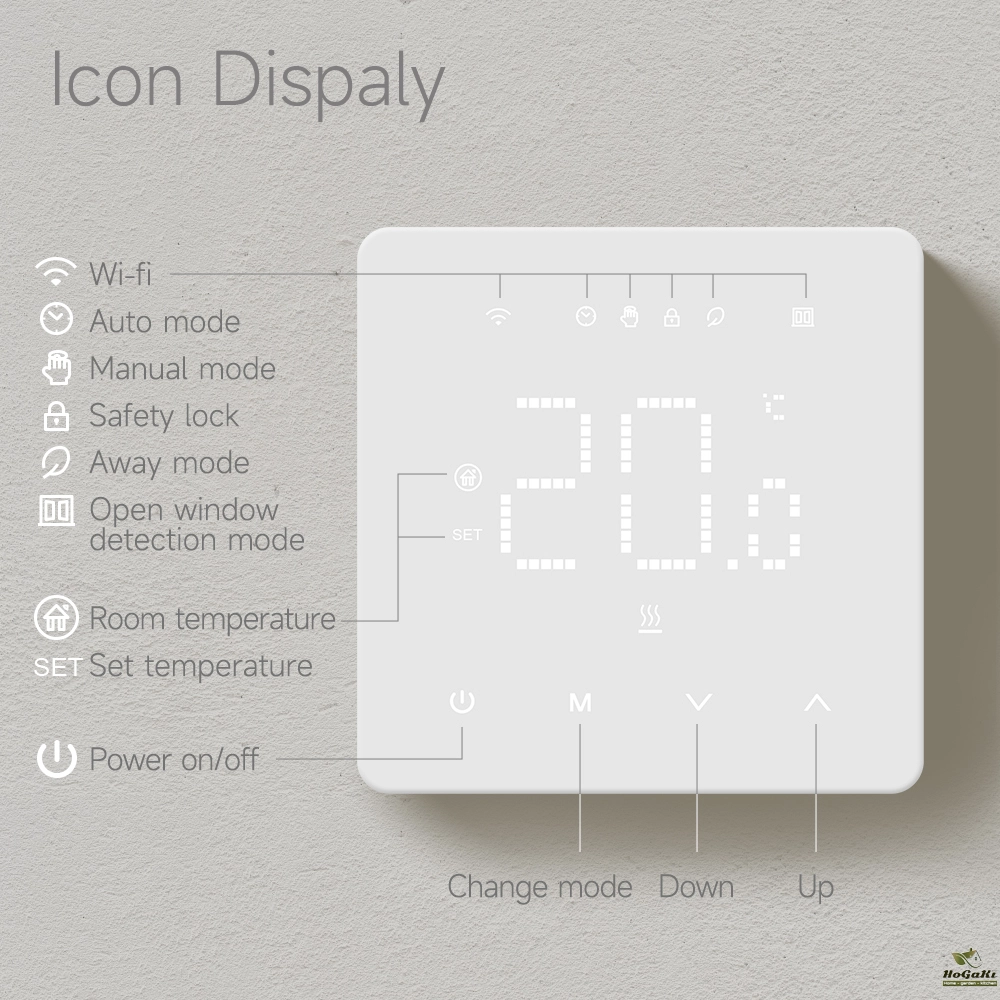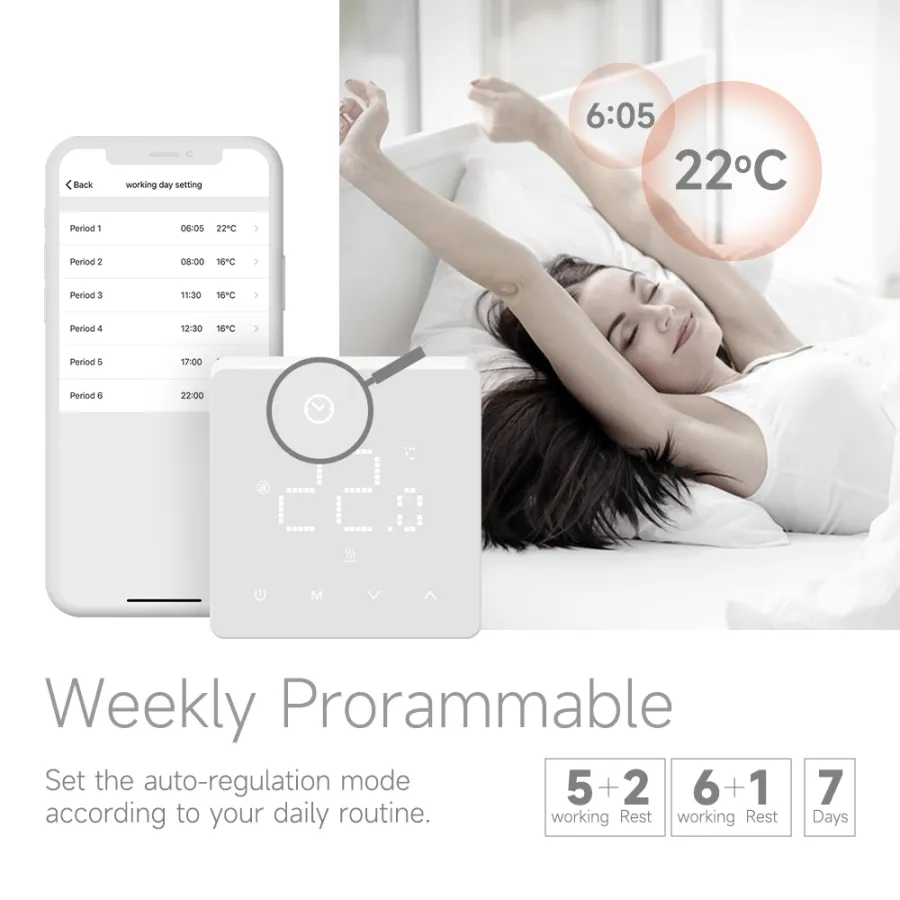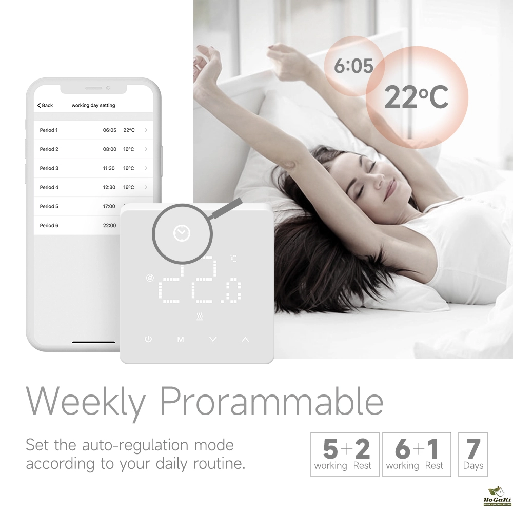 【Part of TGM50-WIFI-WPB (white) can be programmed daily, with the ability to set temperatures for 6 time periods per day.】