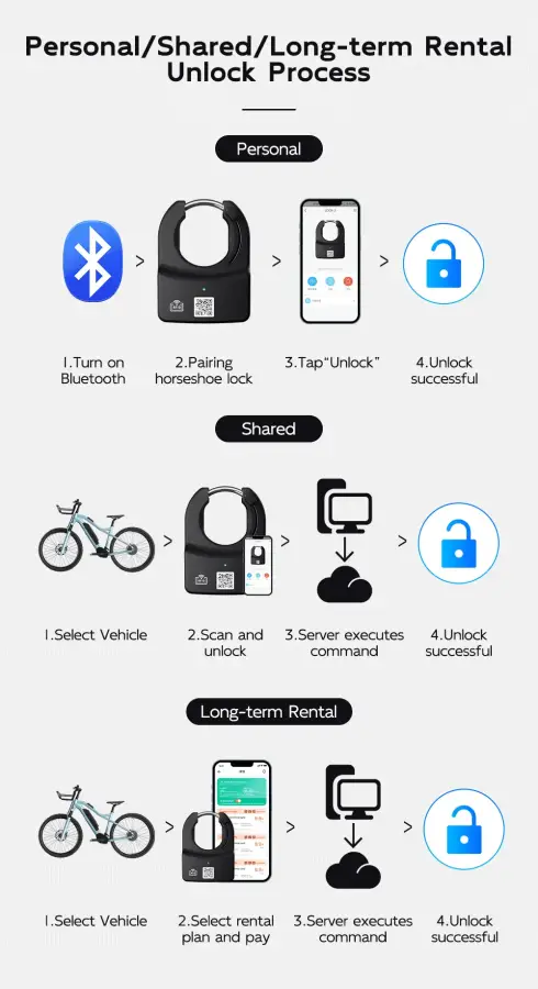 Unlocking method : APP code unlocking / swipe RFID card unlocking / customer remote unlocking