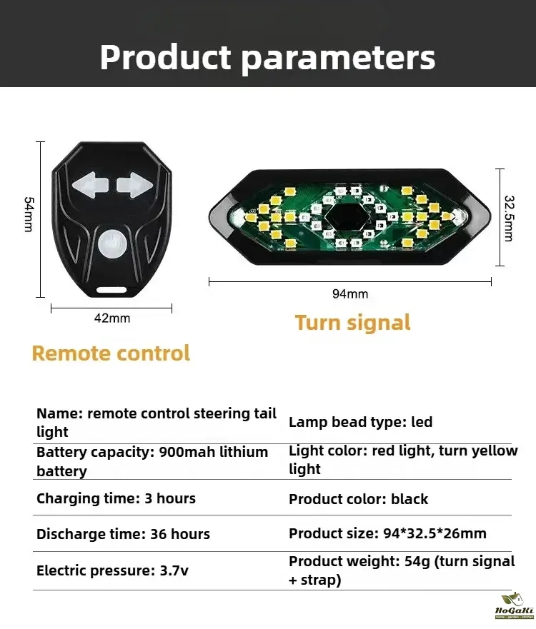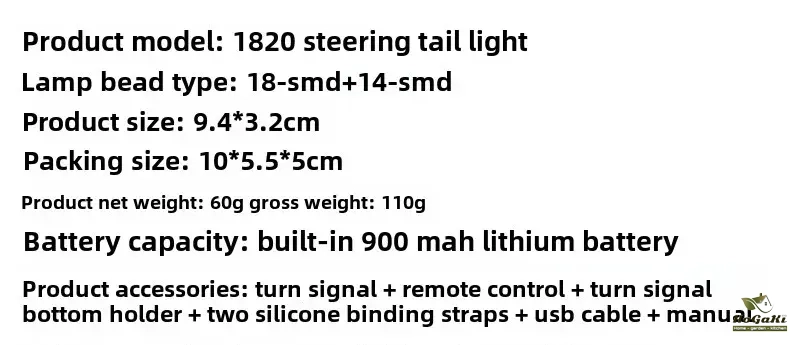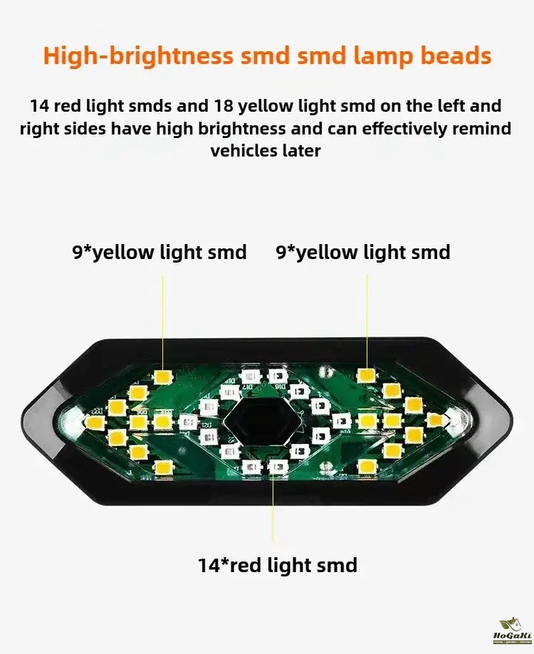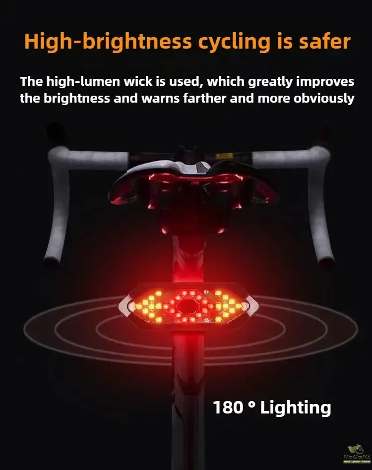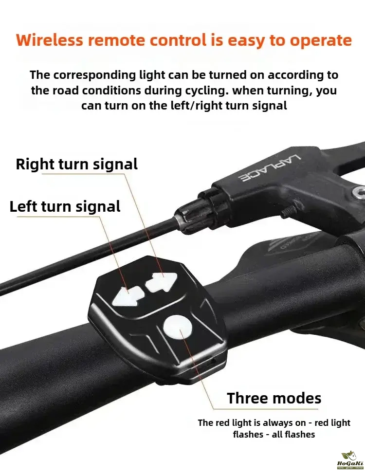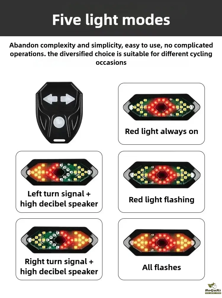 5 Light Modes: Red Light--Flashing red light--Left turn signal--Right turn signal--All flashing