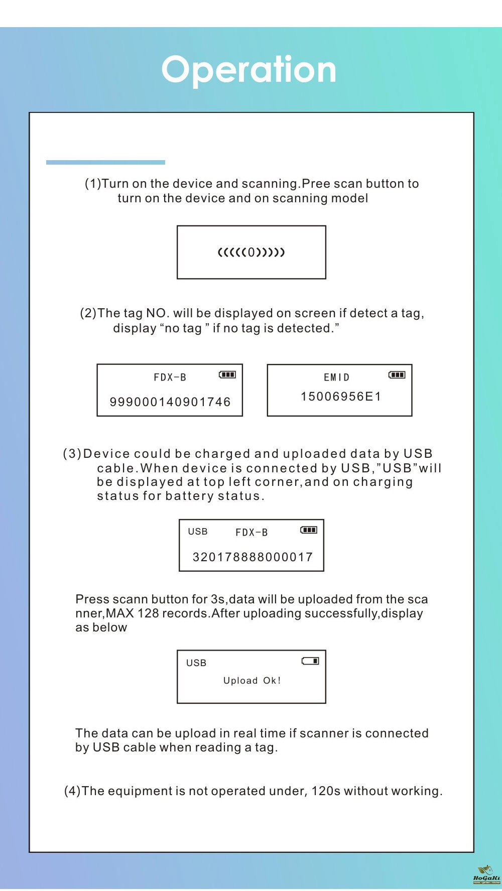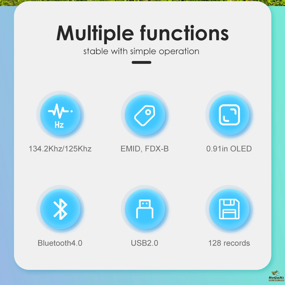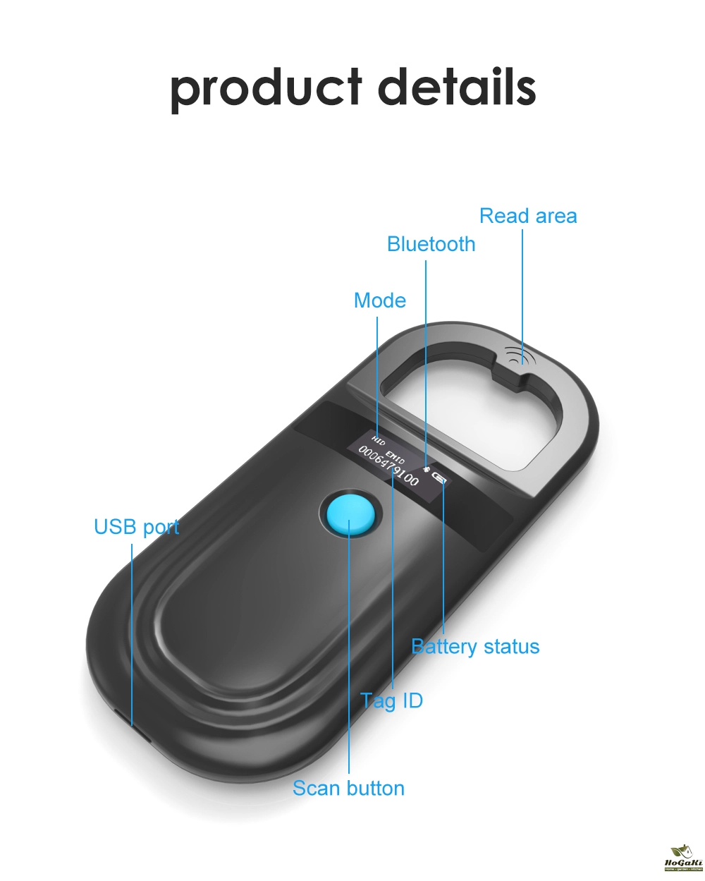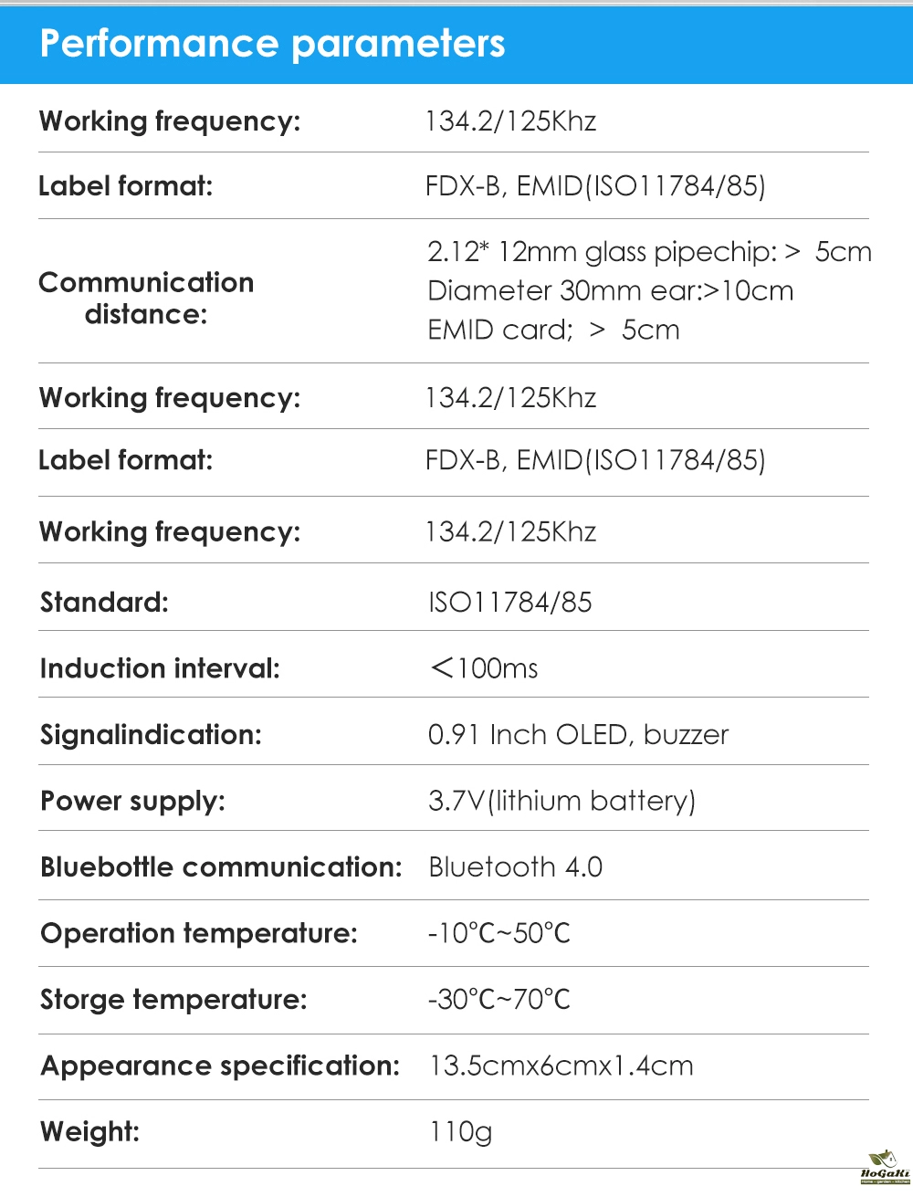 * This is a low-frequency label scanner with wireless identification technology, which supports reading EMID, FDX-B (ISO11784 / 85) tag & microchip.