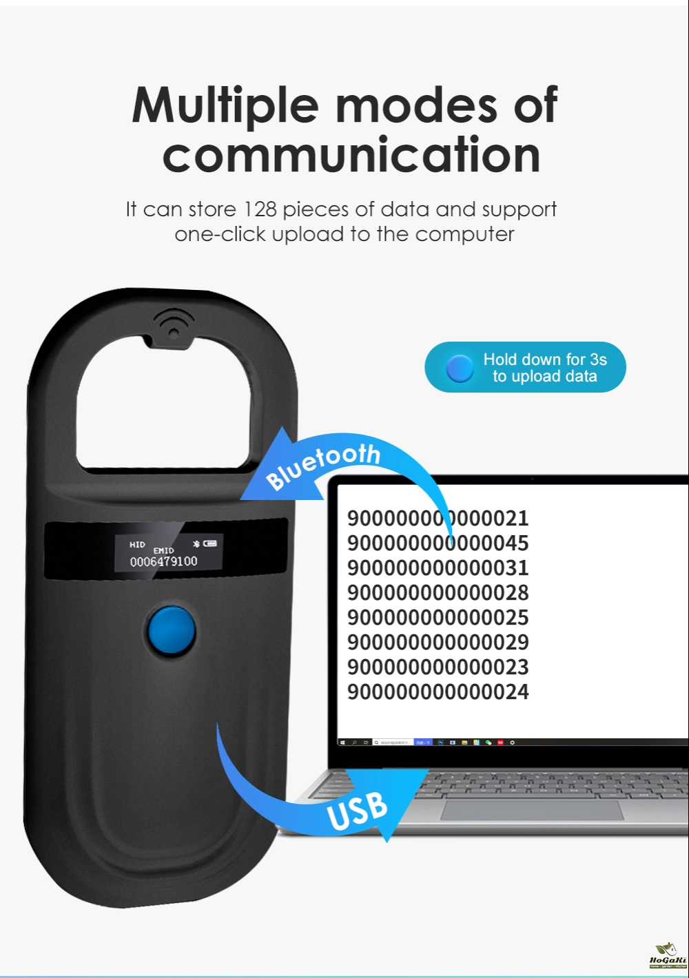 * This is a low-frequency label scanner with wireless identification technology, which supports reading EMID, FDX-B (ISO11784 / 85) tag & microchip.