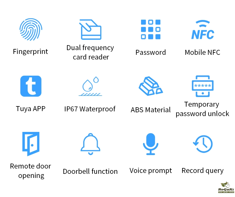ldentification method: Fingerprint, RFID Card, Password, Tuya APP.